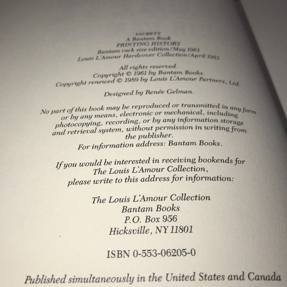 This book had a name plate in it. See picture. This vintage Louis L'Amour leather bound book is a must-have for fans of Western Americana. The book is a part of the Sackett series and is sure to transport readers to the Wild West with its vivid storytelling and compelling characters. Whether you're an avid collector or simply looking for a thrilling read, this book is sure to satisfy.