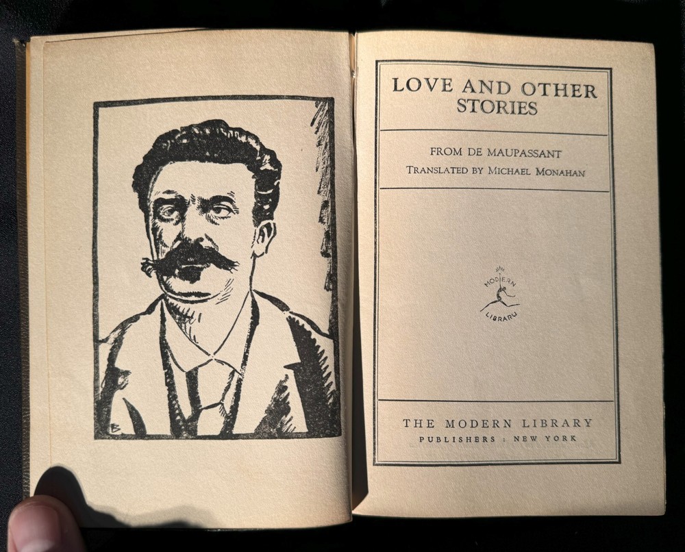 This vintage hardcover book titled " Love and Other Stories " by Guy De Maupassant is a collection of short stories about the topic of love. The book is in English and has 222 pages. It is published by The Modern Library and is intended for adult readers. The book is illustrated and has a vintage feel to it, making it a great addition to any antiquarian and collectible book collection. The publication year is unknown, but the book is believed to be a classic work by the renowned author Guy De Maupassant. This book is perfect for anyone who loves short stories and wants to add a touch of vintage charm to their book collection.