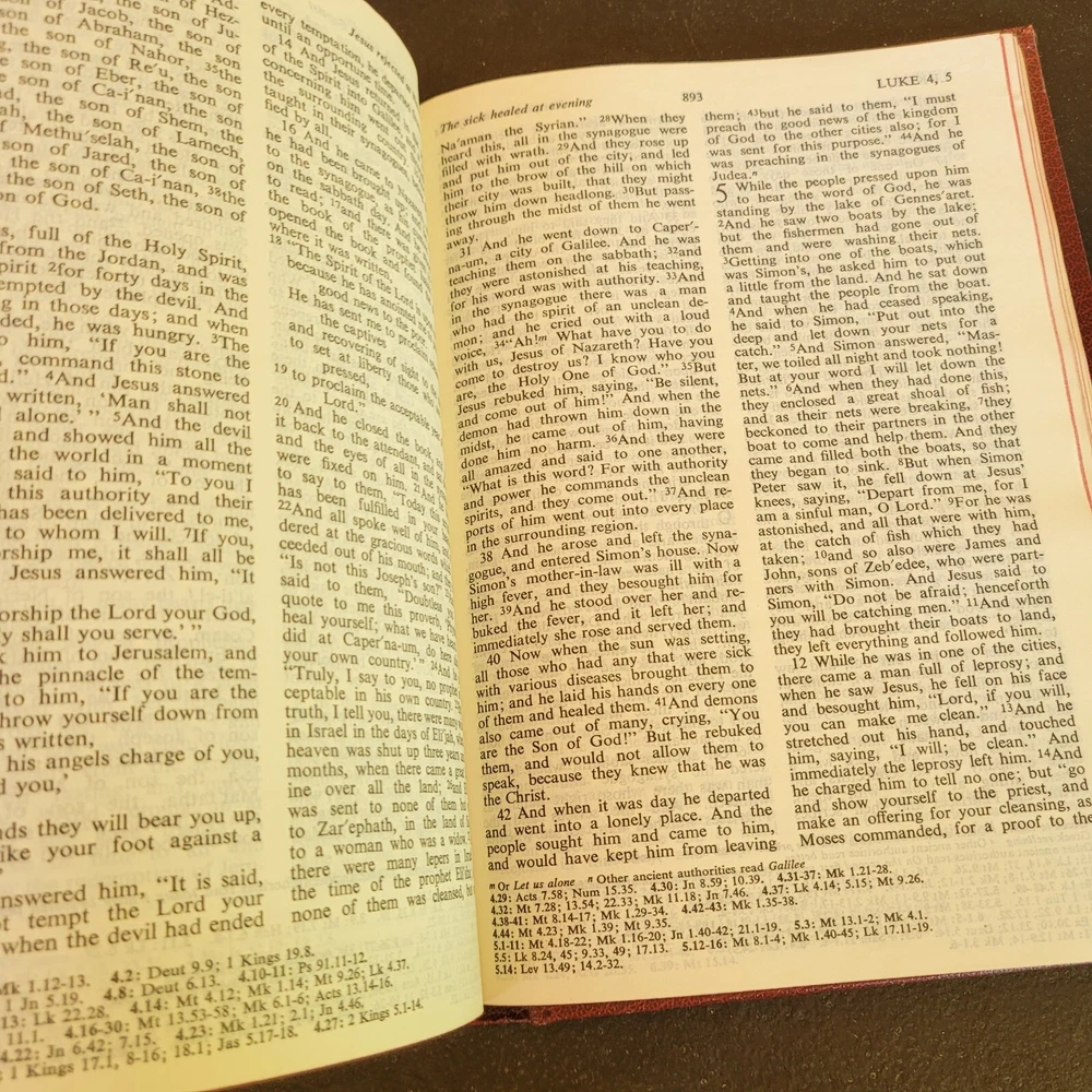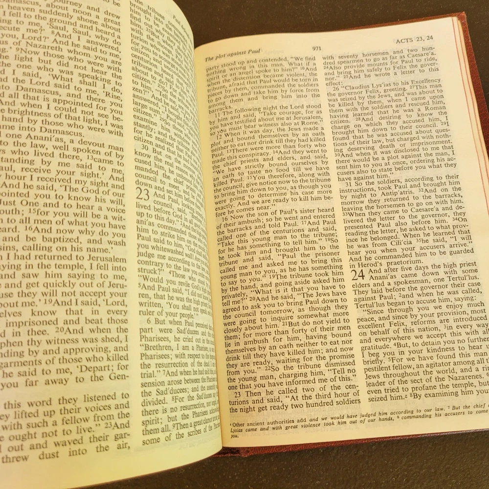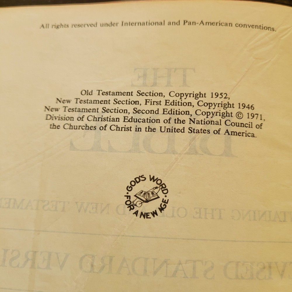 This vintage 1971 RSV Holy Bible is a beautiful piece of history with its classic red hardcover. The spine separation and minor imperfections add character, showing its well-loved past. The text is clear and readable, making it perfect for collectors or those who appreciate aged religious books. Just be sure to check the photos and description for wear details—it’s exactly what you’d expect from a cherished, decades-old Bible! A great find for anyone who values timeless scripture with a touch of nostalgia.