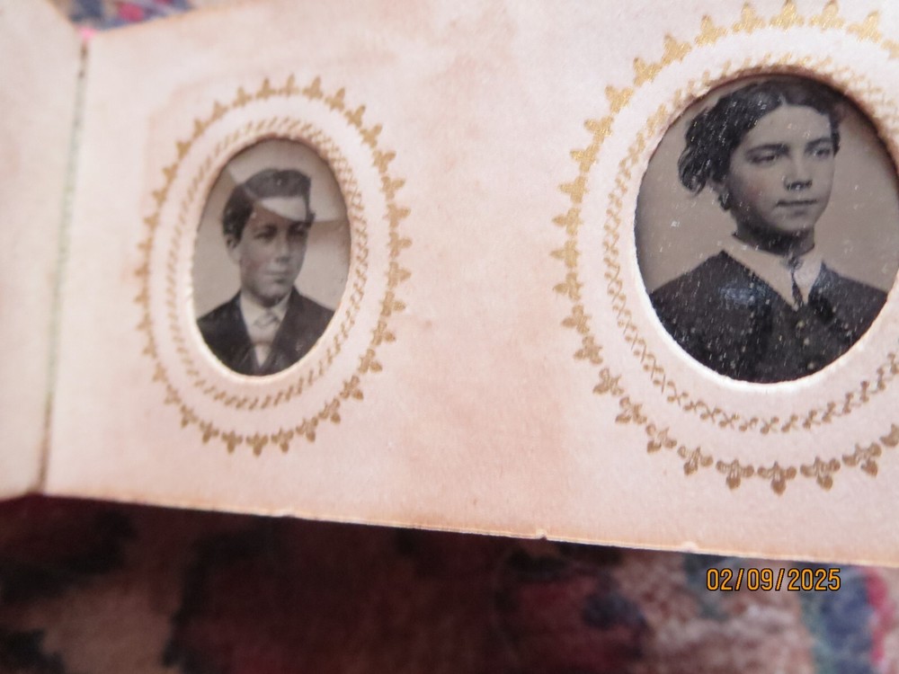Vintage Photo Album Late 1800S Early 1900S Leather Bound 16 photos, Some African American. 3.25 X 2inch X 1 inch thick. All my listings support TIME OUT (a shelter for battered women and their children in Payson Arizona).