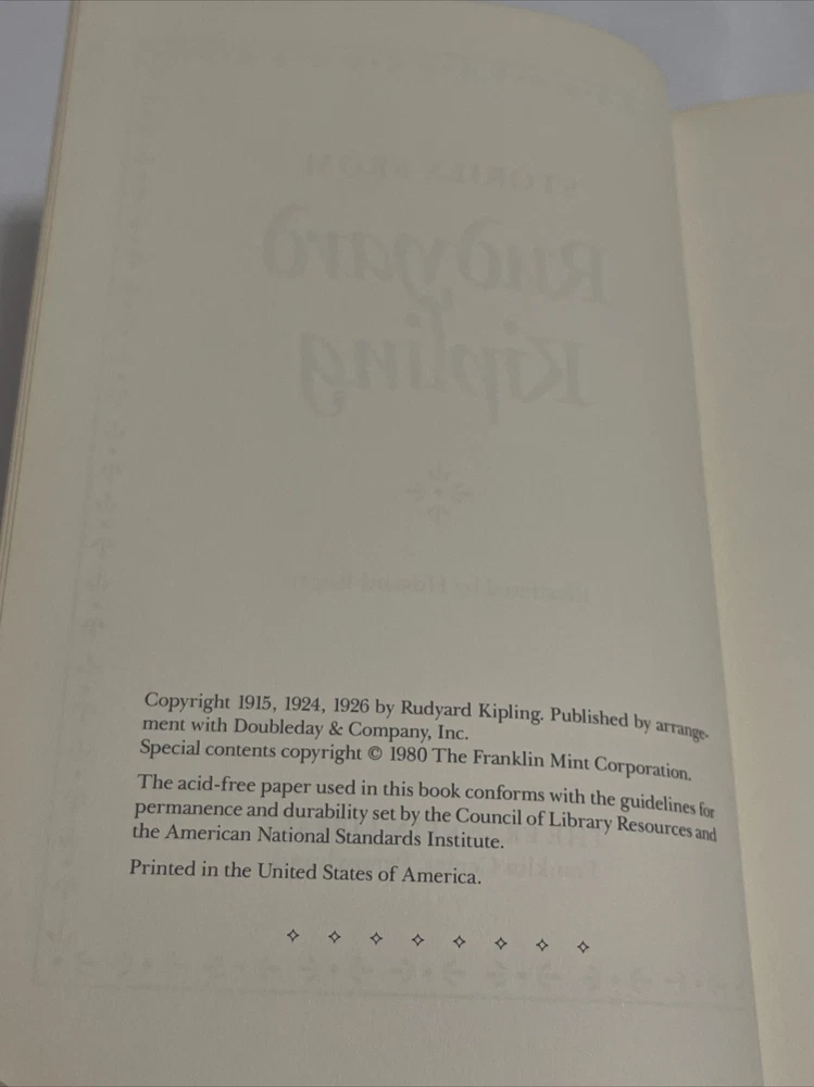 STORIES FROM RUDYARD 1980 Franklin Library KIPLING Leather Edition Hardback Book Gold Gilded Pre owned comes from a smoke free home. Looks like the book has never been read. Thanks for your interest! Please know that I have a 2 day handling time on all orders. eBay considers Friday, Saturday or Sunday a weekend. Example- Orders placed on Friday per eBay the order will be shipped by Tuesday. Thanks kindly 🦋🐝