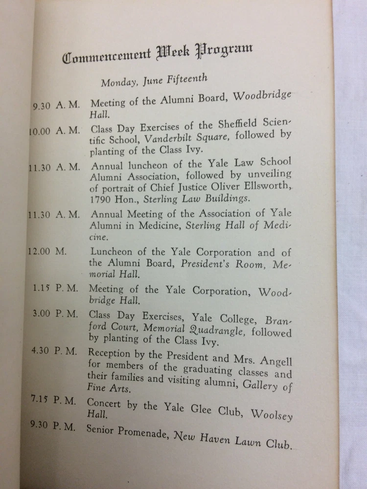 Hi, Thanks for Looking. This is an embossed vintage 1931 Leather Bound Yale College Commencement Week program . The book shows age wear with discoloration. It measures app 4 1/2" x 6". See Pictures.