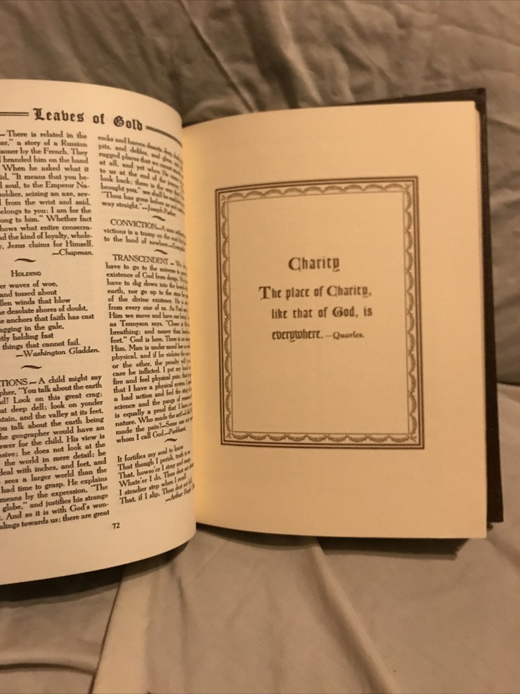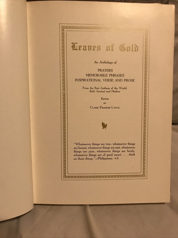 Vtg Leaves Of Gold Book Revised Ed 1948 Anthology of Prayers Memorable Phrases. This book is in very good condition. It’s only flaw would be a little scratch on the front cover (shown by pointing in the last pic) Please look at the photos carefully; they are part of the description. From a smoke free, pet free home. Ships for free. Thanks for looking, and let us know if you have any questions. Please order carefully, beware we do not accept returns.
