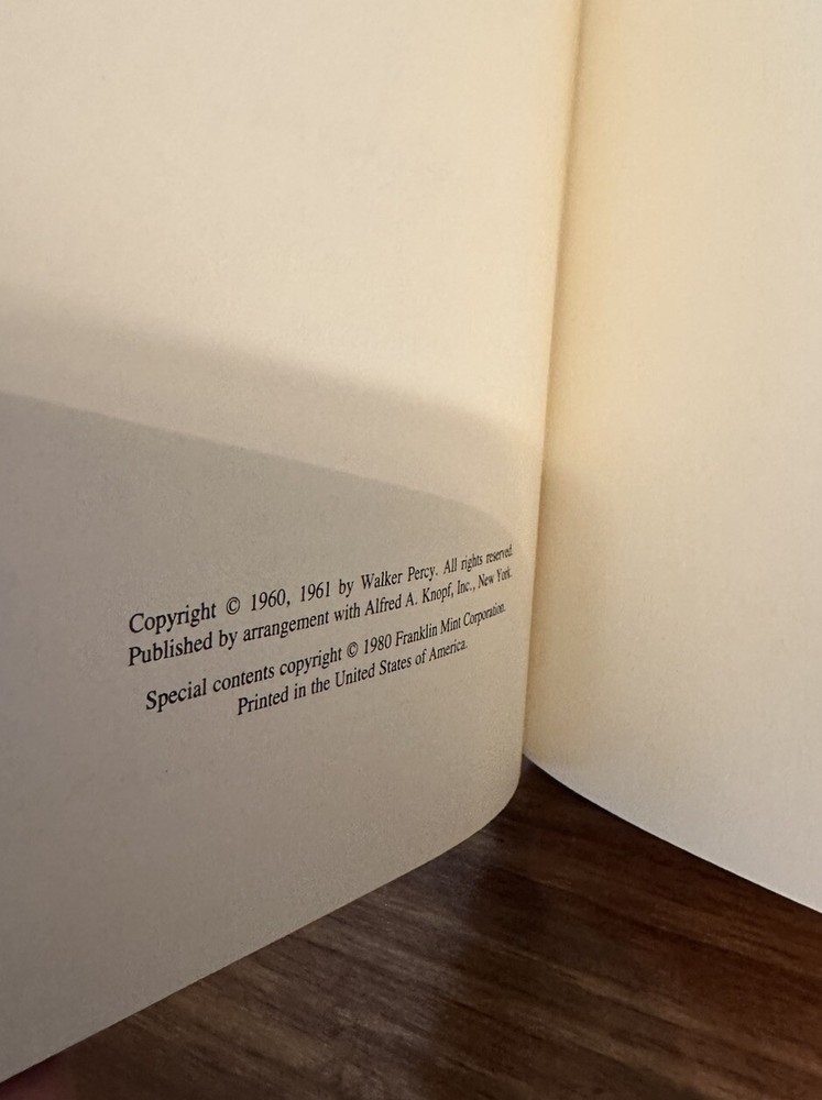This stunning Franklin Library edition of *The Moviegoer* is a true collector's gem! The signed limited edition is in flawless condition—no wear, crisp pages, and beautifully preserved. Perfect for fans of Walker Percy or rare book enthusiasts. The fast, free domestic shipping is a fantastic bonus. A rare find from a pristine, smoke-free estate—don’t miss this auction!