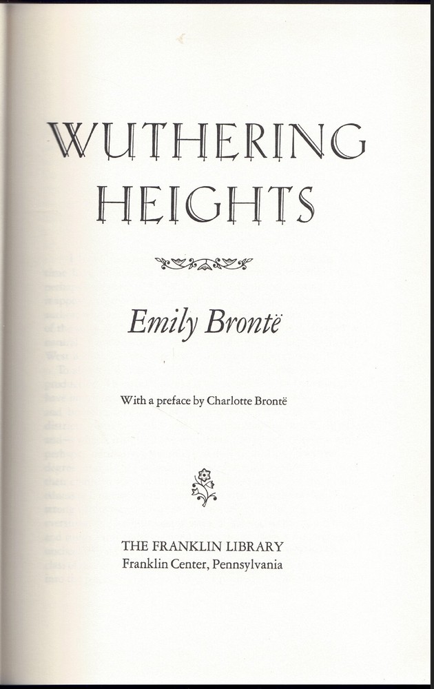 WUTHERING HEIGHTS By Emily Brontë Leather Bound Franklin Library Collectible Book. Book looks to be unread and opened. Some of the Gold gilding wearing off the sides and bottom. Book is in great condition. Sold to the lower 48 States Only. Buy Two Franklin Library Books with combined shipping. Thinning out my book collection. Good Luck!