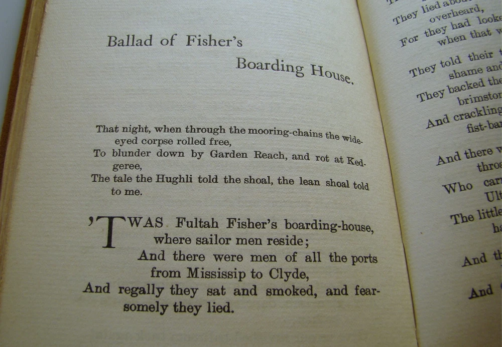 You are bidding on: a vintage leather-bound book titled, "BARRACK-ROOM BALLADS". It contains 150 pages of song lyrics. Condition: It's in good condition. SHIPPING: $4.75 for s/h in the US -- Delivery Confirmation "tracking" is included. International shipping will cost more (please ask before bidding). We usually ship 2x a week, Tuesdays and Fridays. Buyers from WA state and many other states will have to pay their state's Sales Tax -- the tax is automatically collected by ebay and not sent to the seller. International Buyers – Please Note: Import duties, taxes and charges are not included in the item price or shipping charges. These charges are the buyer's responsibility. Please check with your country's customs office to determine what these additional costs will be prior to bidding/buying. We do not mark merchandise values below value or mark items as "gifts" - US and International government regulations prohibit such behavior. Thanks for stopping by!