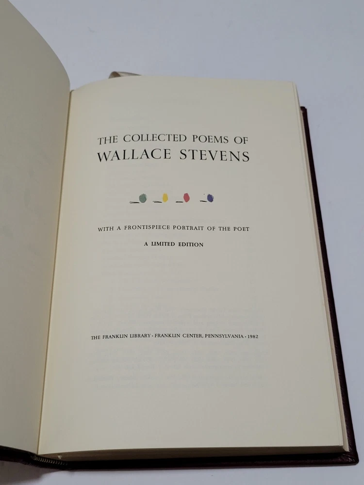 Wallace Stevens, Collected Poems, Franklin Library, Limited Edition 1982 Leather. Your 1 Stop Vintage & Newer Gift Shop, Something For Anyone On Your Gift List Guaranteed! Books & Collectibles Galore! Selling Multiple Private Collections, Always Willing To Cut Deals & Combine Orders! Condition Is Preowned. Shipped USPS Media Mail, Free! Up For Sale Is A: Wallace Stevens, Collected Poems, Franklin Library, 1982 Leather. A Limited Edition Collectors Copy. Note: The Original Owners Name Tag Is Inside The Front Cover. Very Good Overall Condition For Its Age, See Photos. Appears Unread. Selling A Large Franklin Library Estate Book Collection, Always Willing To Cut Deals & Combine Orders! Please See All Photos For Exact Specifics. An Incredible Collectors Book @ A More Incredible Price Point, Fast & Free Shipping Too! 100% Positive 5 Star Feedback. Shipped USPS Media Mail, Free! Feel Free To Check Out My Store, Vintage & Newer Collectibles Galore! Thank You For Your Time, Have A Wonderful Day & Stay Safe Too. Sincerely, CJ.