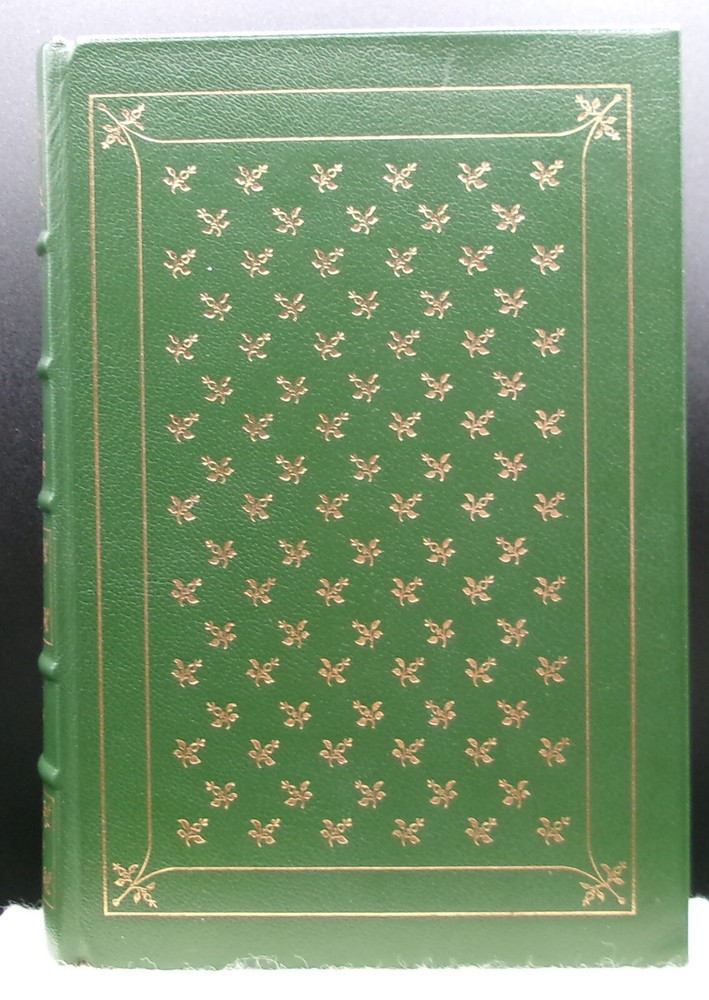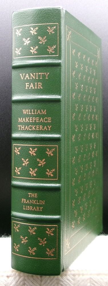 VANITY FAIR by William Makepeace Thackeray. Franklin Center, Pennsylvania: The Franklin Library, 1977. "A Limited Edition" statement and 1977 date printed to the title page. "This limited edition is published exclusively for subscribers to The Franklin Library collection, The 100 Greatest Books Of All Time" printed to the limitation page. Complete novel. Thirty-nine illustrations by the author. A lovely classic gift. Fine, tight and firm in full green leather with patterned gilt embossed decorations to the front and rear covers, gilt embossed decorations and titles to the raised five-band hubbed spine, green-and-yellow headband and tail-band, all page edges bright gilt, green satin-moire end-papers, and a sewn-in silk ribbon marker. Royal octavo: 9.5" by 6.7" by 2"; 726 pages; plus preliminaries. PLEASE VIEW OUR STORE FOR MORE GREAT ILLUSTRATED BOOKS THANKS! Created by eBay Seller's Assistant Basic.