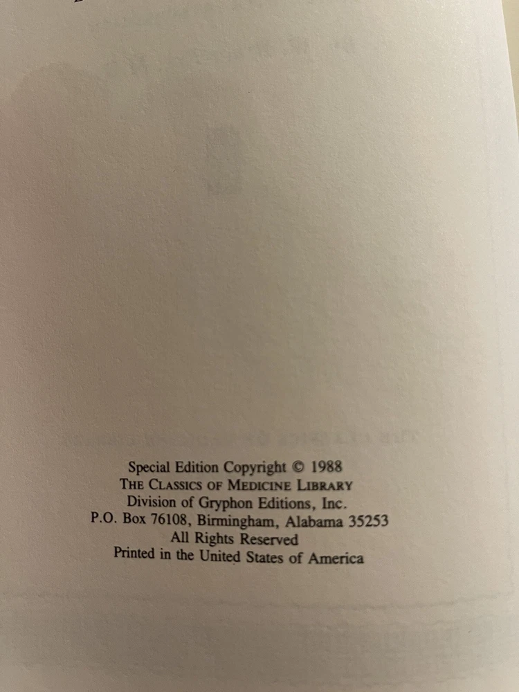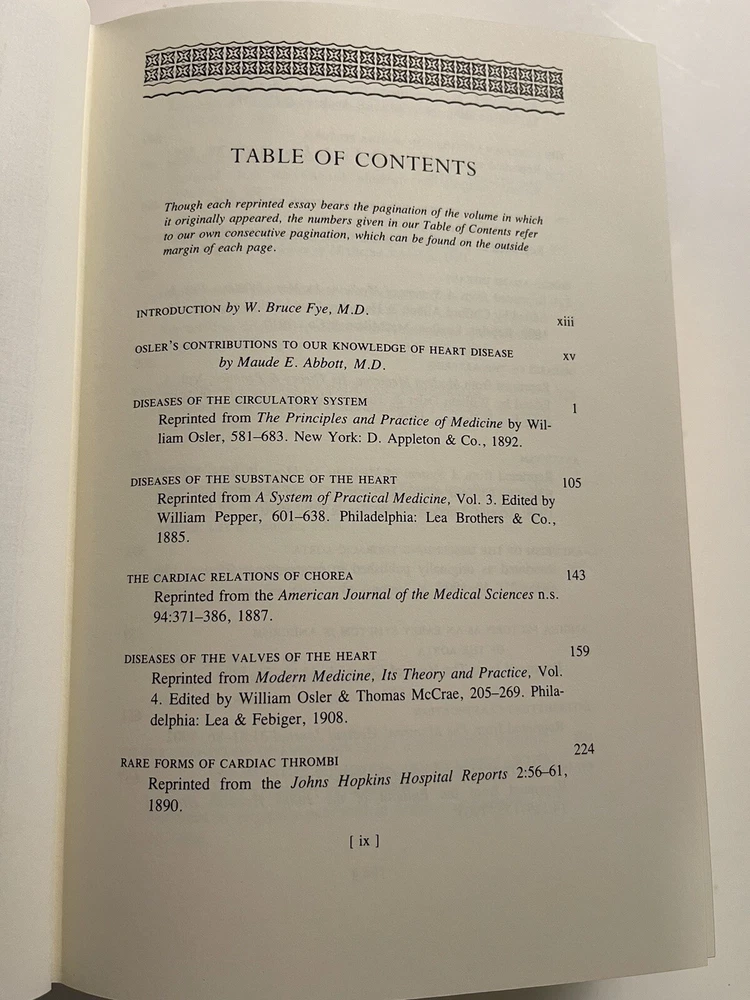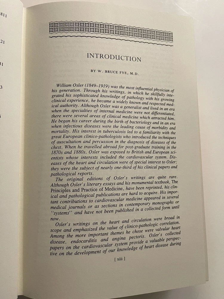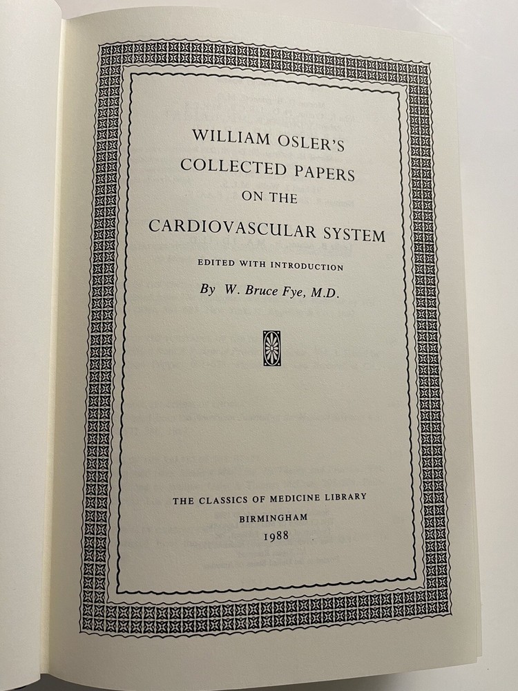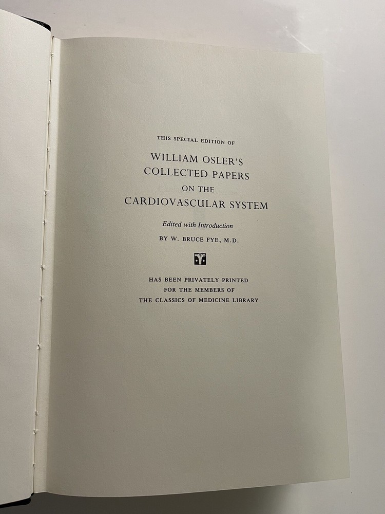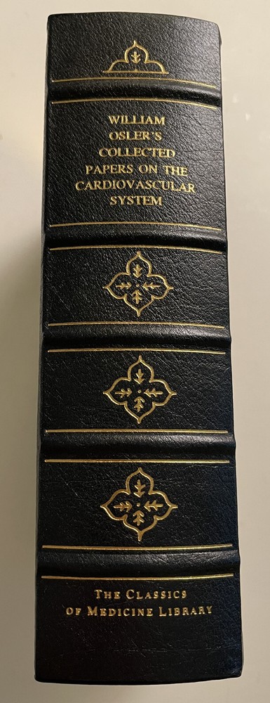 This limited edition, illustrated book by William Osler, M.D. contains a collection of papers on the cardiovascular system. The author's expertise in medicine and science is evident in this original publication, which was printed in 1988 in Birmingham, Alabama by The Classics of Medicine Library. The leather-bound book with personalized details is a valuable addition to any collection of antiquarian and collectible books. The publisher's attention to detail and the book's unique aspects, such as being signed and written in English, make it a must-have for any fan of science and medicine. The book is in fantastic shape, pretty much mint, please see photos for details. Lit 4- up