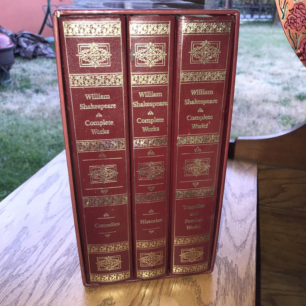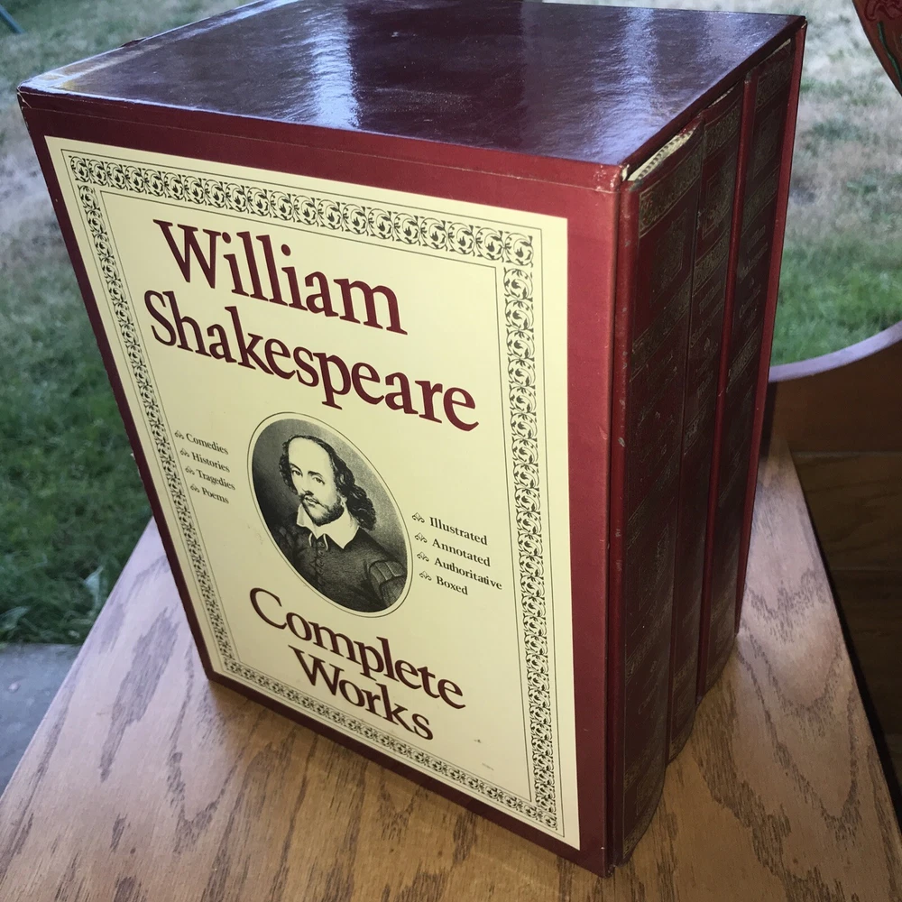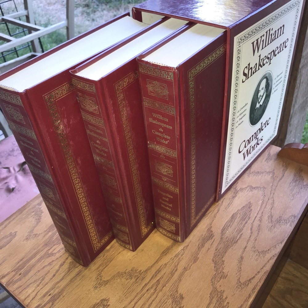 William Shakespeare Complete Works Original Texts 3 Book Box Set 1987, Hardcover Condition: very good, like new. See pictures. Returns accepted buyer pays all shipping cost. International shipping available buyer pays all shipping cost. Thank you for stopping to look.
