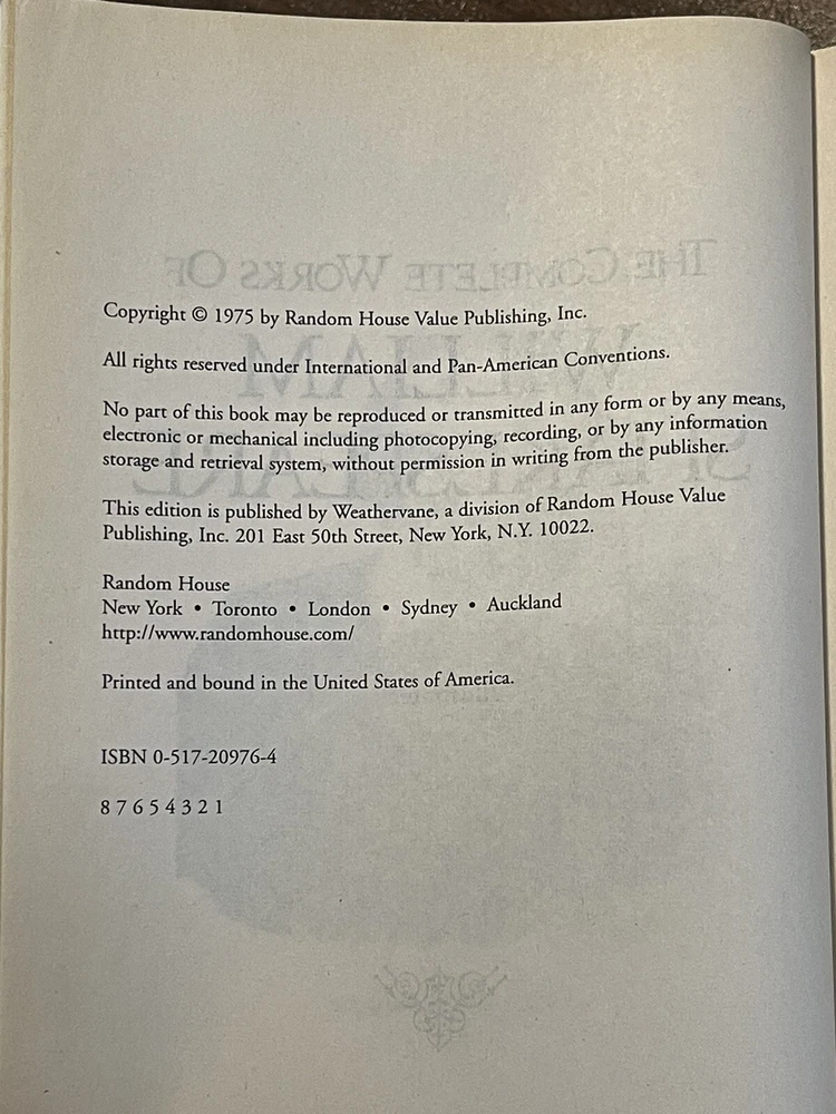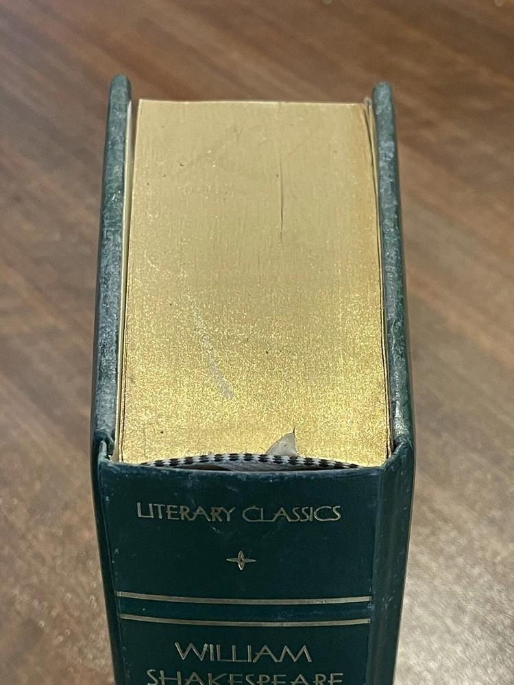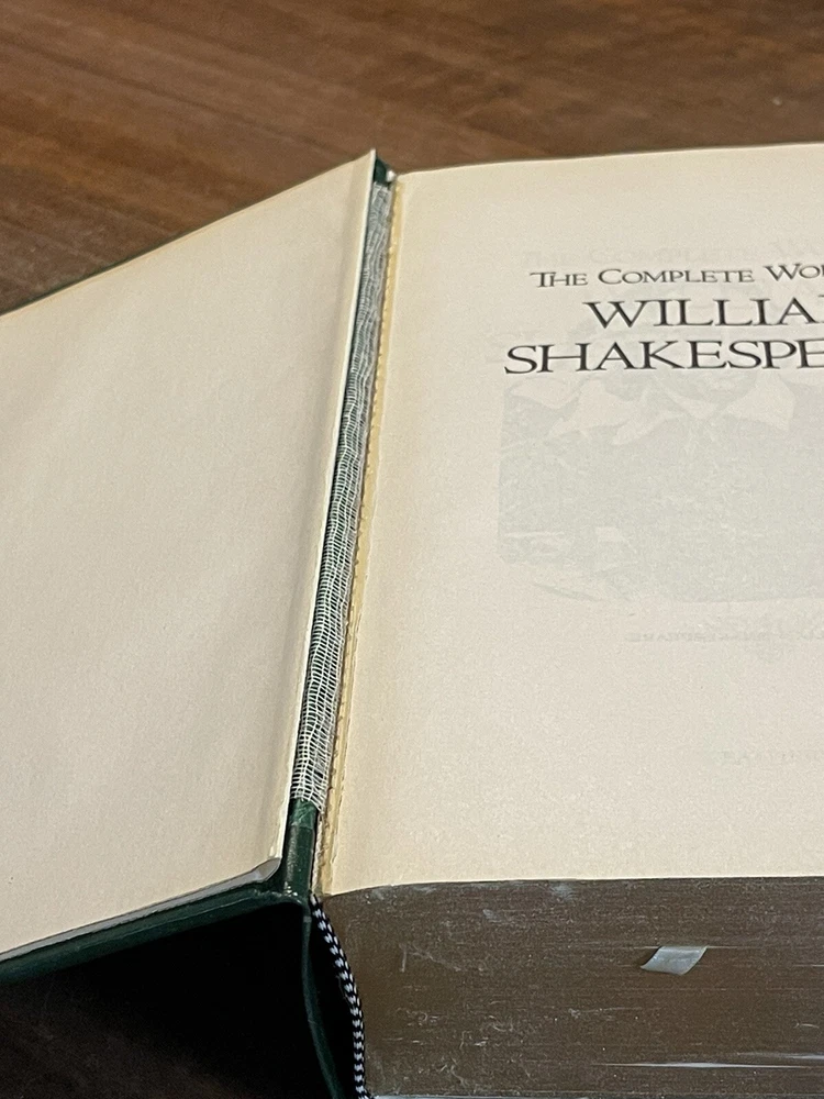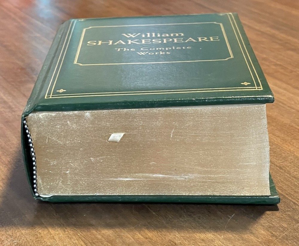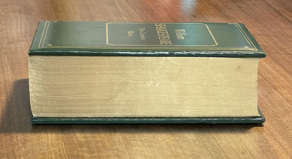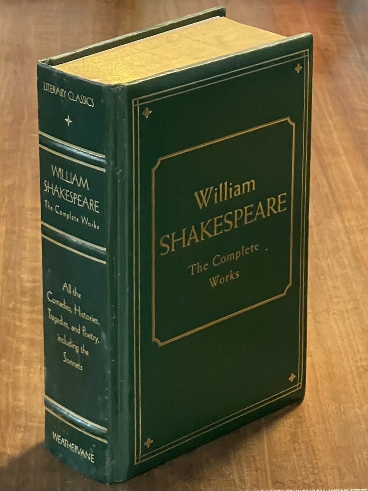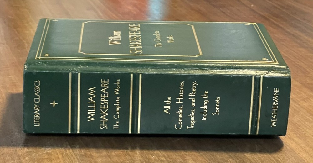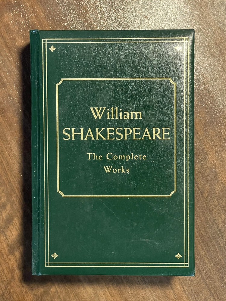 William Shakespeare: The Complete Works (1975, Leatherbound). This vintage hardcover book is in very good used condition, but there is some shelf wear, and the front cover has separated from the rest of the book, yet it is still held together very well. The pages are golden edged. Please see the photos for the condition as the photos are of the actual book that you will receive. Thank you! Overview Hamlet. Romeo and Juliet. Henry V. Macbeth. A Midsummer Night's Dream. King Lear. Lovers of literature will immediately recognize these as signature works of William Shakespeare, whose plays still rank as the greatest dramas ever produced in the English language, four centuries after they were written. The Complete Works of William Shakespeare collects all 37 of the immortal Bard's comedies, tragedies, and historical plays in a collectible edition. This volume also features Shakespeare's complete poetry, including the sonnets. With this beautiful edition, you can enjoy Shakespeare's enduring literary legacy again and again.