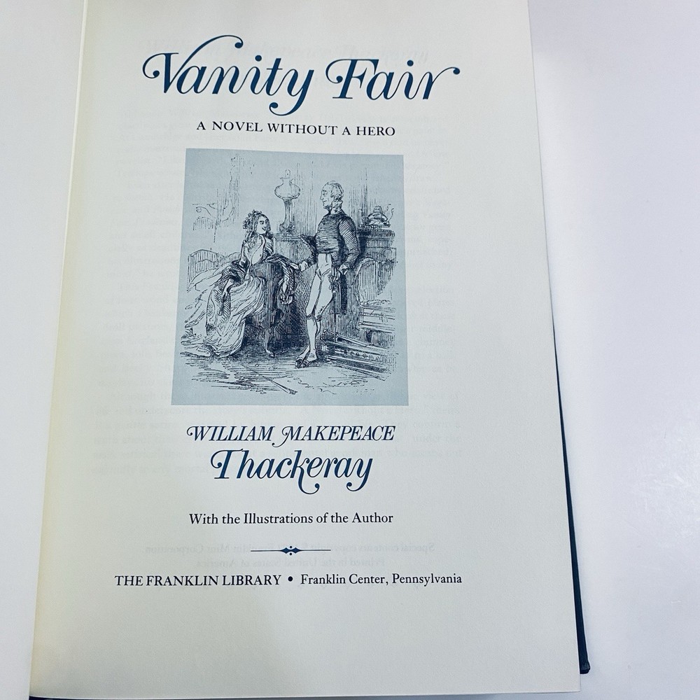 William Makepeace Thackeray, Vanity Fair. Franklin Center, PA: The Franklin Library, 1981, collector’s edition! Octavo, 678pp., Publisher’s navy boards quarter bound in leather. Gold gilt details to the covers and the spine. Spine with three bands. Decorative marble end papers, ribbon bookmark, gold gilt edges. Illustrated by the author himself. A fantastic copy in fine condition! Ships fast, secure