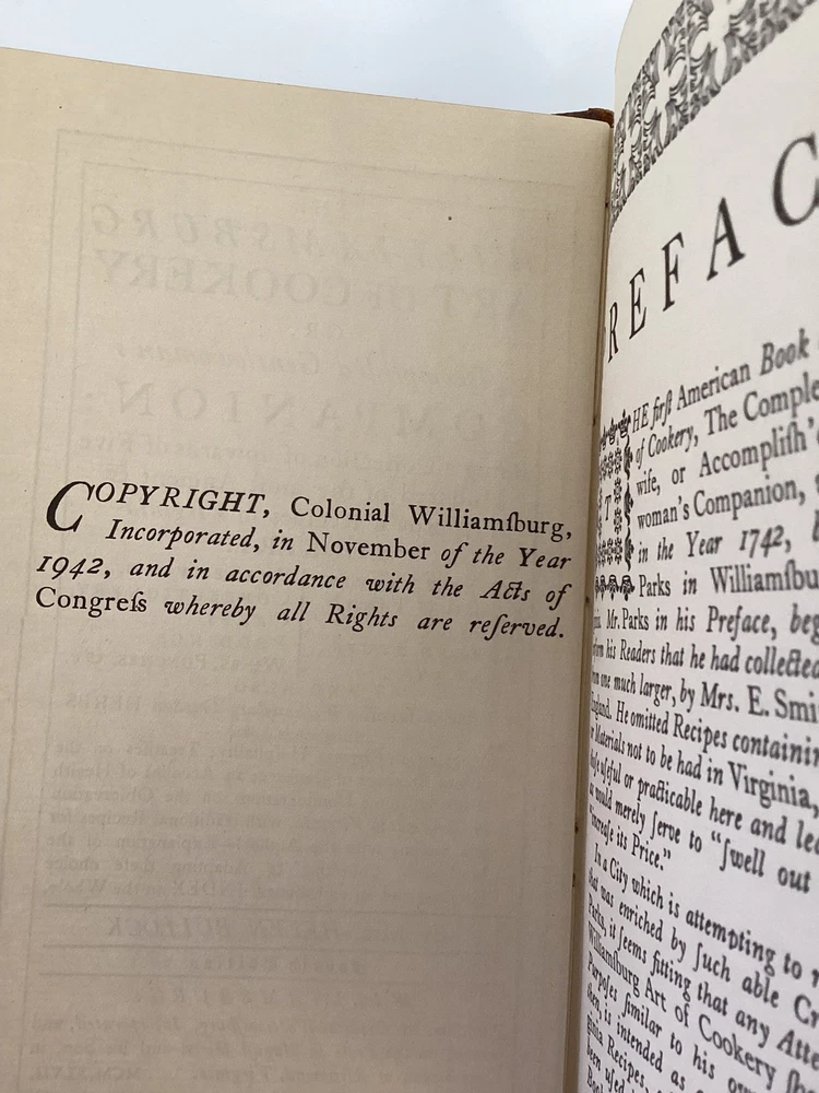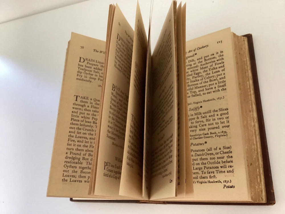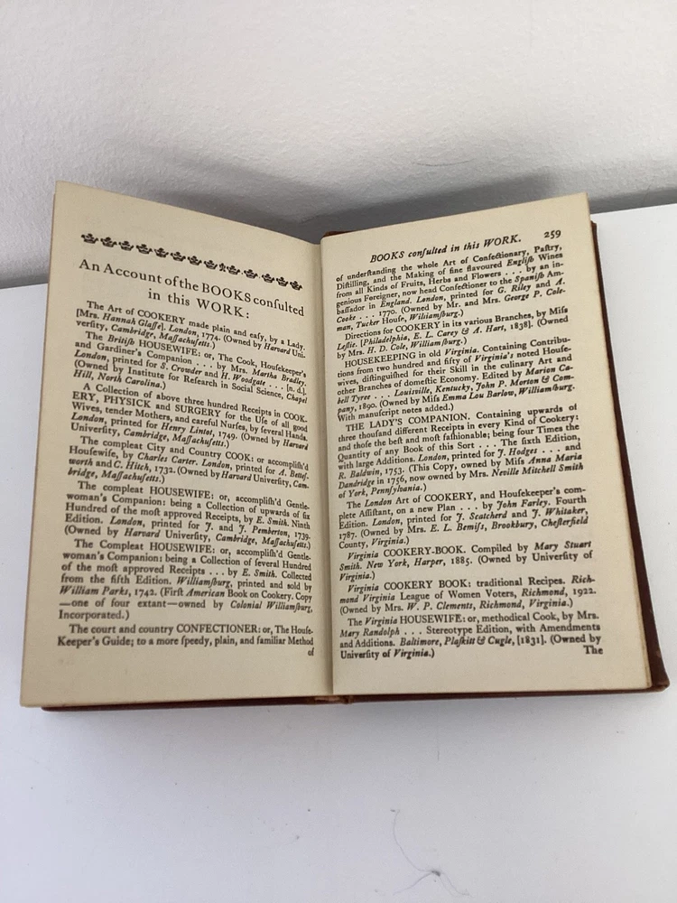 Description: Fourth edition published in 1947, leather binding for durability, contains over 500 traditional Virginia recipes, includes sections on soups, sauces, breads, and desserts. Illustrated with historical prints. Condition: Used - Good. Minor scuffs on the leather cover and some wear on the spine edges. Please see photos. Sizing & measurements: Height 18cm