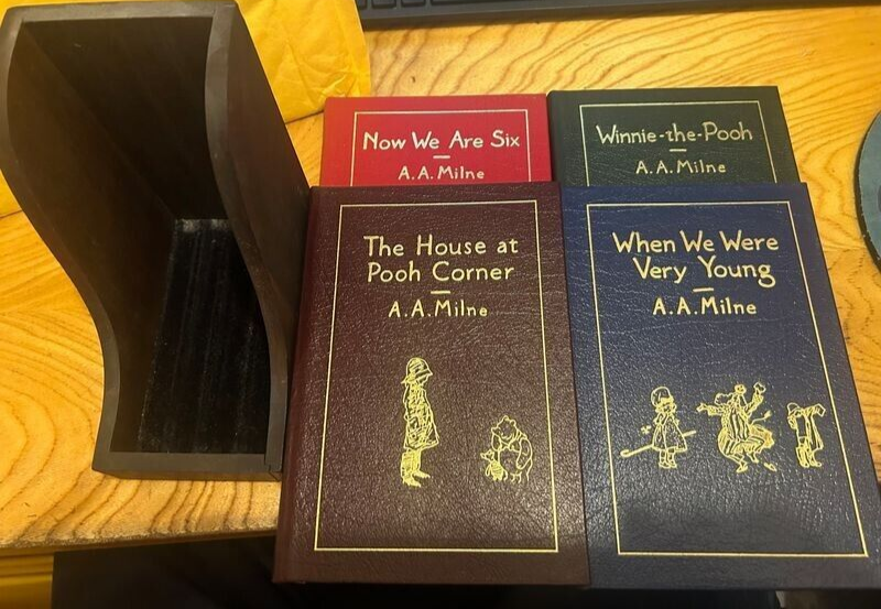 Here we have a 4 book set by Easton Press of Winne the Pooh Books have no wear No markings Box is in great shape. Ships promptly!!!
