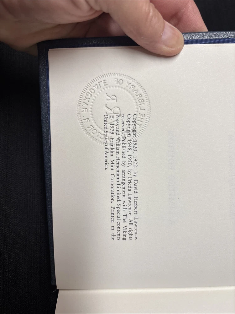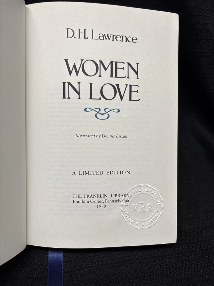 Women in Love by D.H. Lawrence Franklin Library Limited Edition 1979 Leather * From the limited edition collection, The 100 Greatest Books of All Time. Includes "Notes from the Editors" booklet The embossed stamp of the original owner is on the title page. See photos for details. *Other titles from this collection are listed in my ebay store. I will offer a combined shipping discount on the purchase of 2 or more books.