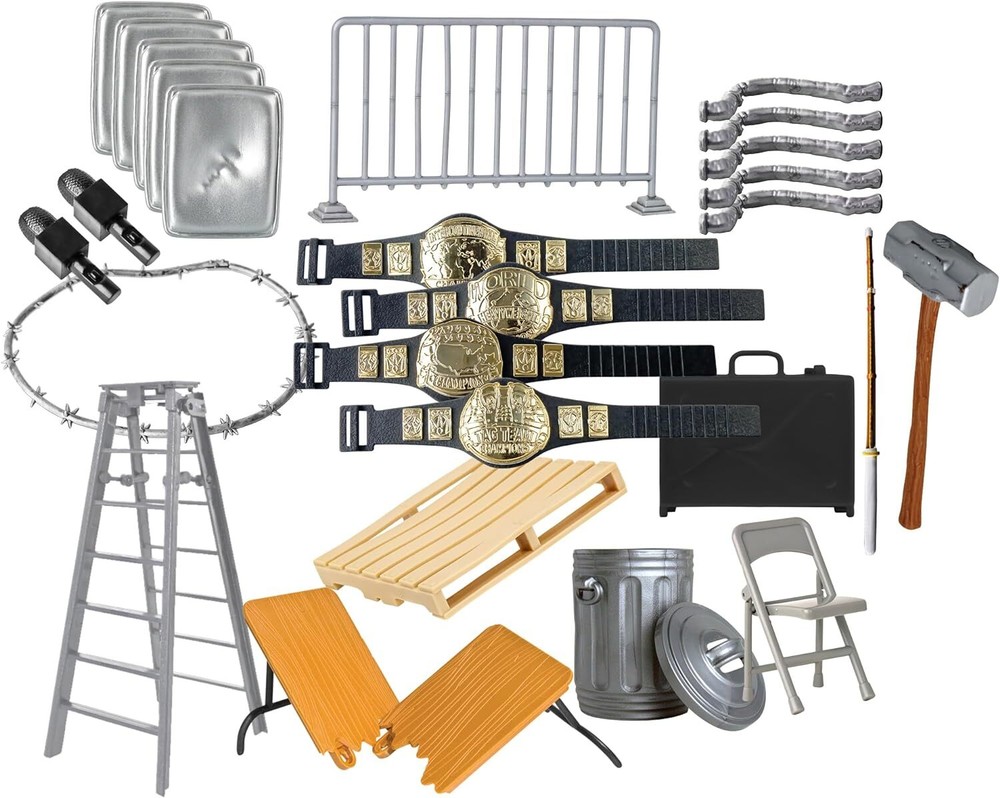 Wrestling Figure Hardcore Gear Special 26 Piece Deal for 26 Set, Yellow Product Details Item Package Dimensions L x W x H: 9.57 x 4.49 x 3.5 inches Package Weight: 0.35 Kilograms Item Dimensions LxWxH: 11 x 8 x 2 inches Item Weight: 12.31 ounces Brand Name: Figures Toy Company Color: Yellow Manufacturer: Figures Toy Company Style: Box Size: 26 Piece Set Provides HOURS OF FUN for those who love playing with wrestling action figures! Comes with 26 different accessories for wrestling action figures. Comes packaged in a box that is sure to bring joy and excitement when opened. Perfect accessory kit for all current and past wrestling figures Great idea for wrestling action figures to recreate your favorite matches Comes with 26 different accessories for wrestling action figures. Comes packaged in a box that is sure to bring joy and excitement when opened. Perfect accessory kit for all current and past wrestling figures. Provides HOURS OF FUN for those who love playing with wrestling action figures!