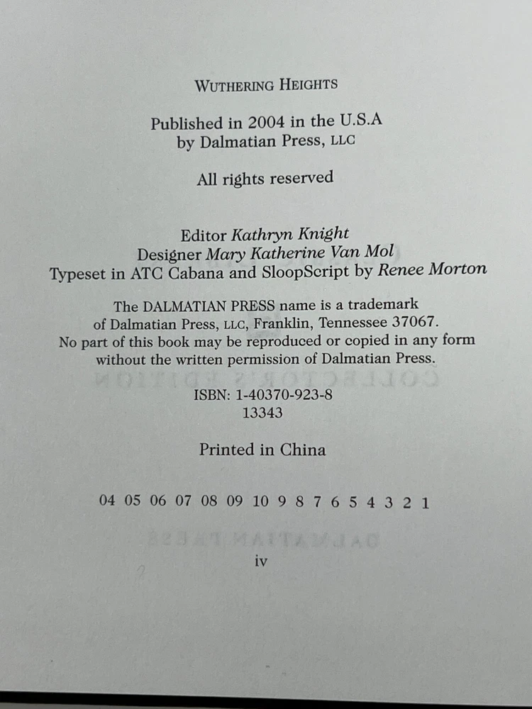 Wuthering Heights: Collector's Edition by Emily Brontë - 2004 Leather-Bound Hardcover Published by The Dalmatian Press Please see pictures to determine the exact condition of this book. Please send a message if you have any questions. We ship promptly.