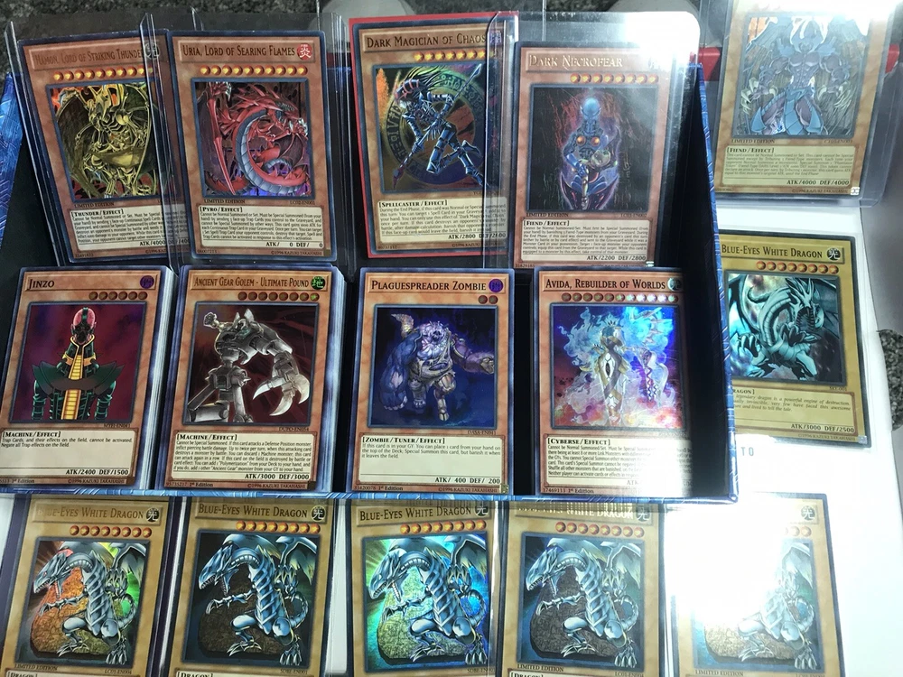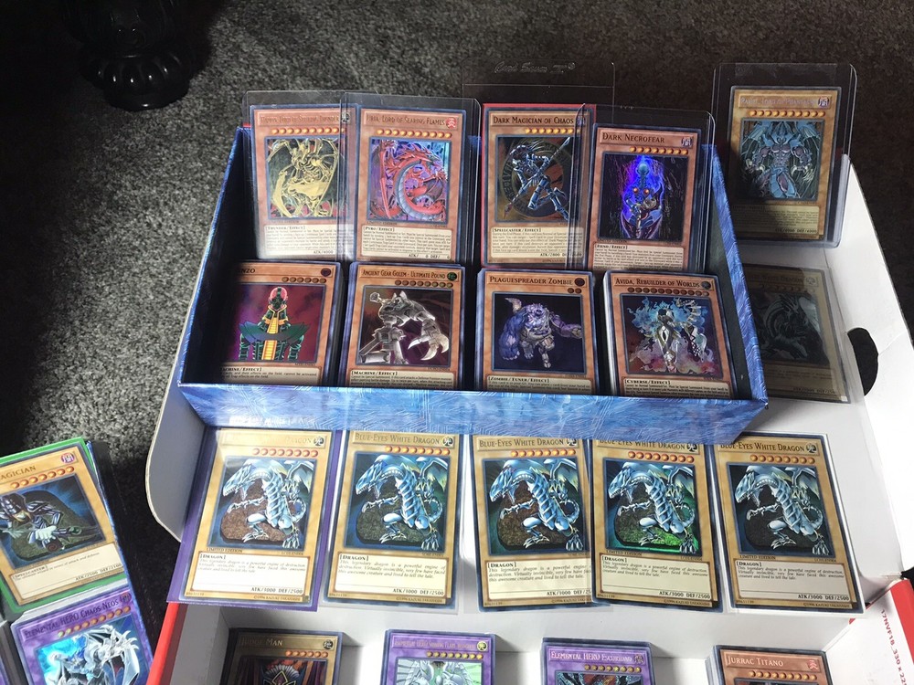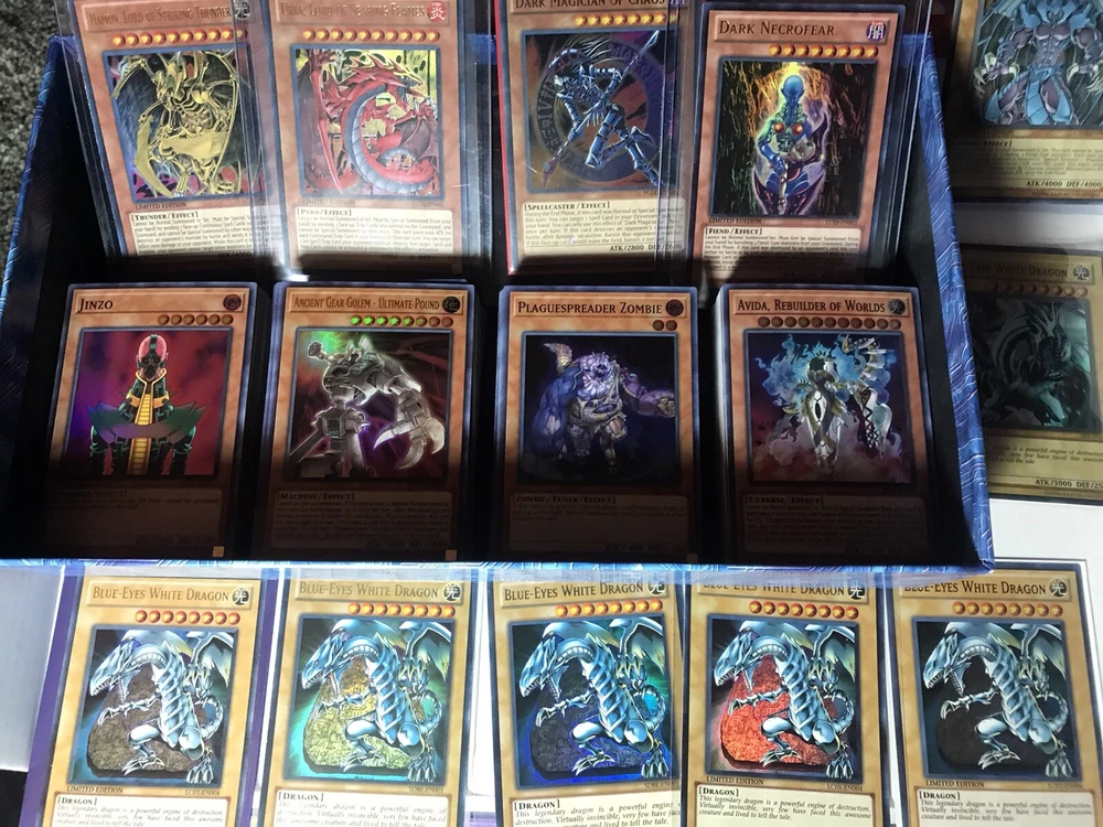 YUGIOH! 30 Card Lot W/ Blue Eyes White Dragon 20 Holos & 10 Rares NOTE: All lots will include at least: - 10 Rares - 20 Holos —You are buying 30 cards from any release date!! Order 4 lots and the 4th will contain a free yugioh! booster pack!! And either a blue eyes, dark magician, summoned skull, red eyes black dragon, or god card like slifer, obelisk, or Ra!!!! —Duplicates are tried to be excluded with good mix of monsters, spells, and traps ranging from brand new to near mint condition —Each lot is randomly selected from 15+ years of collecting cards **if we run out of blue eyes for the lot you could either receive a slifer, obelisk, or Ra god card instead. Also will receive more holo cards instead of just the original 20!!!!** YUGIOH! 30 Card Lot w/ Blue Eyes White Dragon 10 Rares & 20 Holos & Booster Pack!. Shipped with USPS First Class.