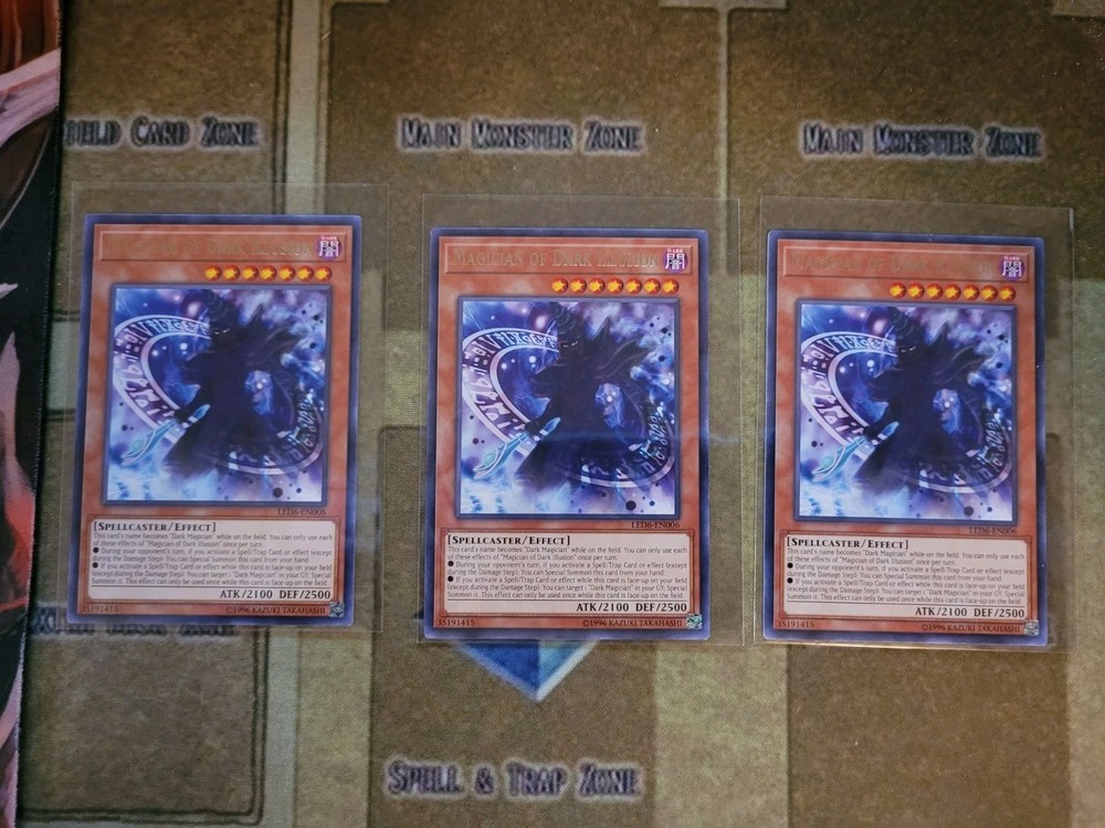 YUGIOH TCG 3X MAGICIAN OF DARK ILLUSION LED6-EN006 RARE UNLIMITED EDITION NEAR MINT YOU GET WHATS SHOWN IN THE PICTURE AND DESCRIPTION ALL CARDS ARE SHIP WITH PROECTIONS. ALL CARDS THAT IS BELOW $20 WELL BE SHIP IN PWE WITH EBAY TRACKING. $24-$21 CARDS WELL BE WITH STAMPS PWE. CARDS ABOVE $25 WELL BE SHIP IN BUBBLE MAIL WITH USPS GROUND SHIPPING TRACKING. IF YOUR ORDERS ADDS UP TO $25 OR ABOVE IT WOULD BE ALSO IN A BUBBLE MAILER. THIS ONLY APPLIES TO USA RESIDENT ONLY. IF YOU ARE FROM PUERTO RICO AND ARE BUYING MAKE SURE YOU HAVE "COUNTRY LIST AS UNITED STATES NOT PRI" OR ELSE I CAN'T PRINT EBAYSHIPPING LABEL WITH TRACKING AND WELL SENT ITEM BY STAMPS TO YOU. THANKS. *Update* BUG IS FIX SO YOU DON'T HAVE TO IF YOU DON'T WANT TO. SENDING ITEM WITH STAMPS STILL STAND IF LABEL DOESNT PRINT. *Update* Starting 4/15/2025 To international buyers that been abusing the refund system by using Fright Forward Services and never read my description. Due to the many of people who been ordering below $20 and been abusing the refund system. I have decided to stop all sales to international buyers who is using Fright Forward Services and buying below $30. I will now be making only exception to those who order over $30 or more only. There will be no more PWE for international buyers only bubbler mailers. If you don't READ or order below $30 I will refund and block you. IF YOU CAN LEAVE FEEDBACKS THAT WOULD BE MUCH APPRECIATE THANK YOU FOR BUYING.