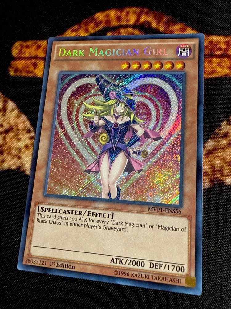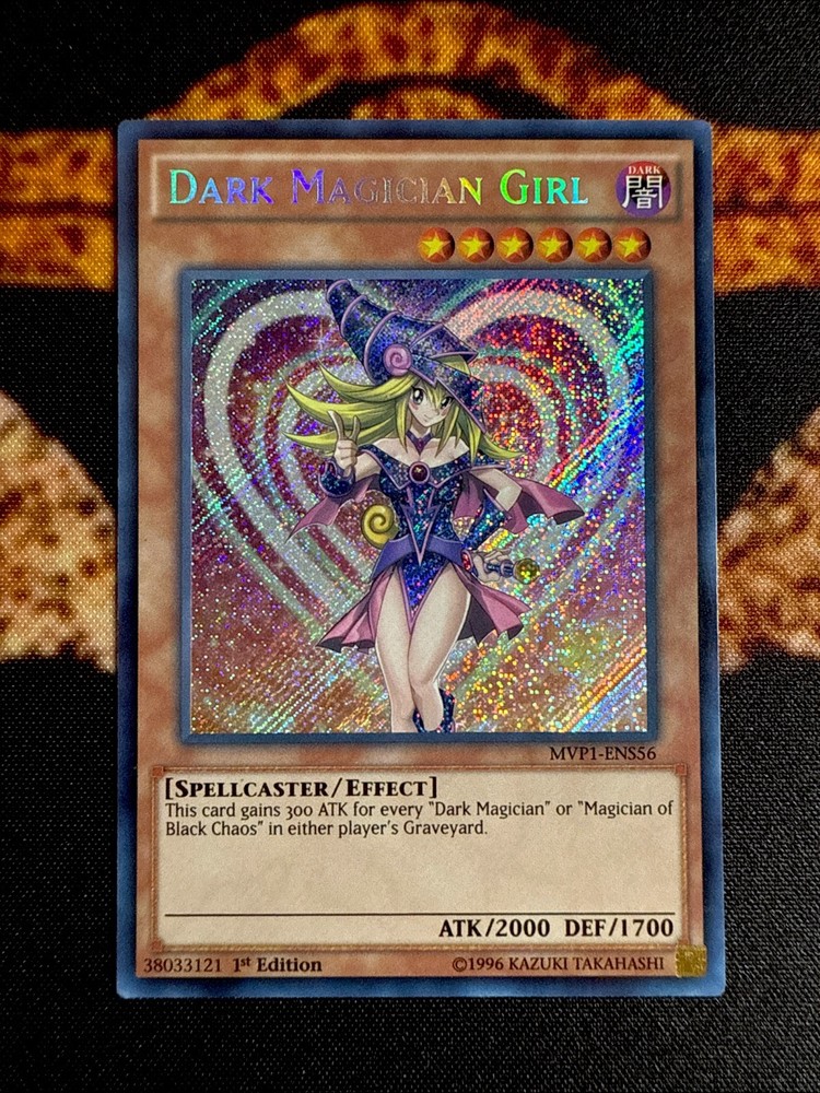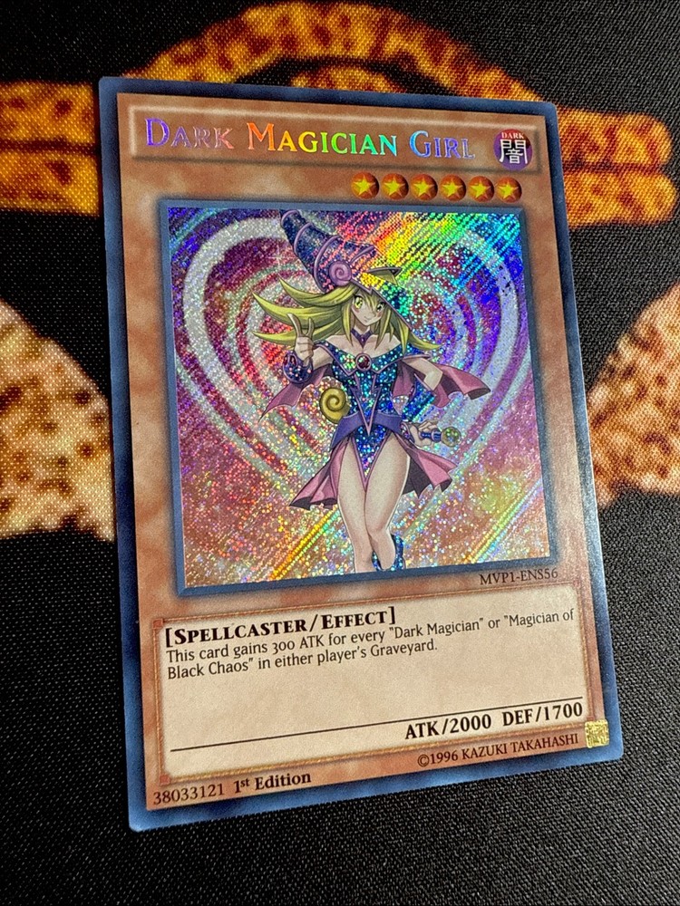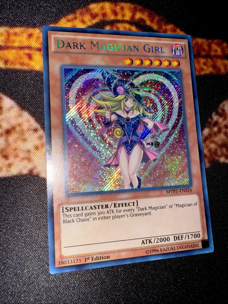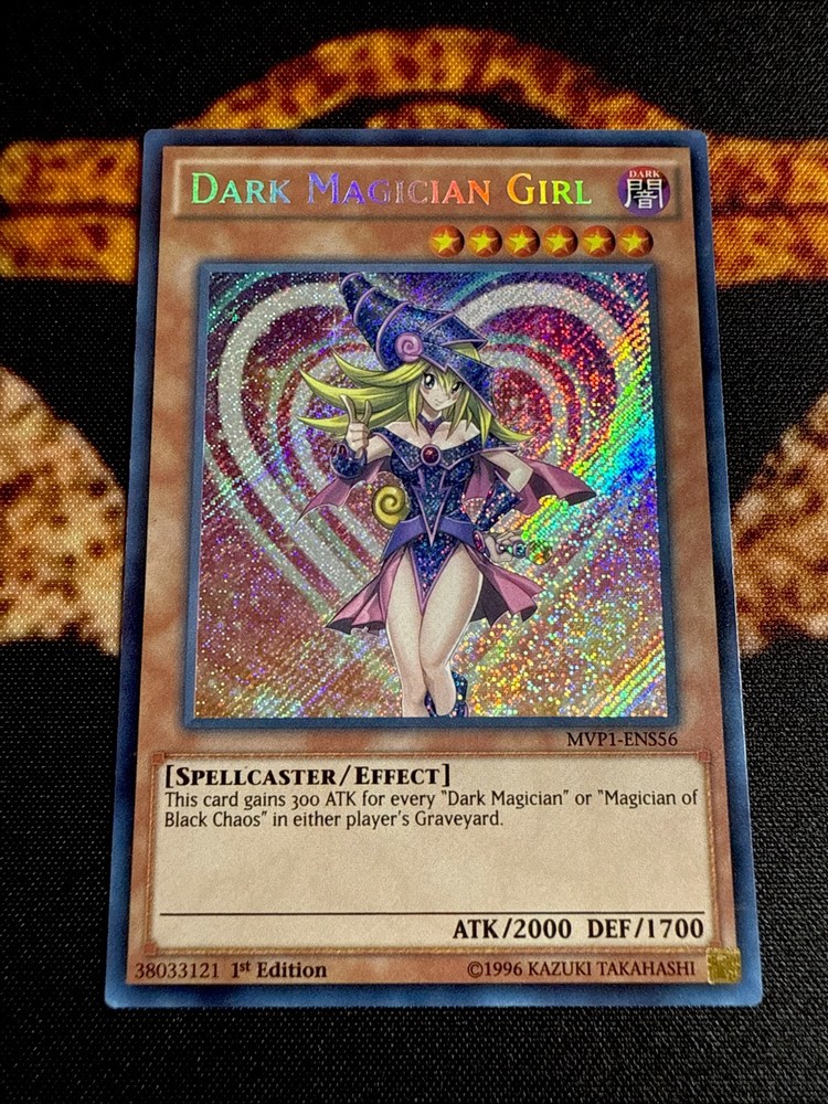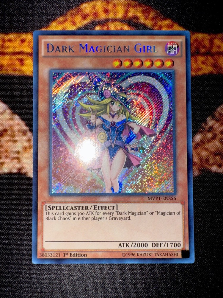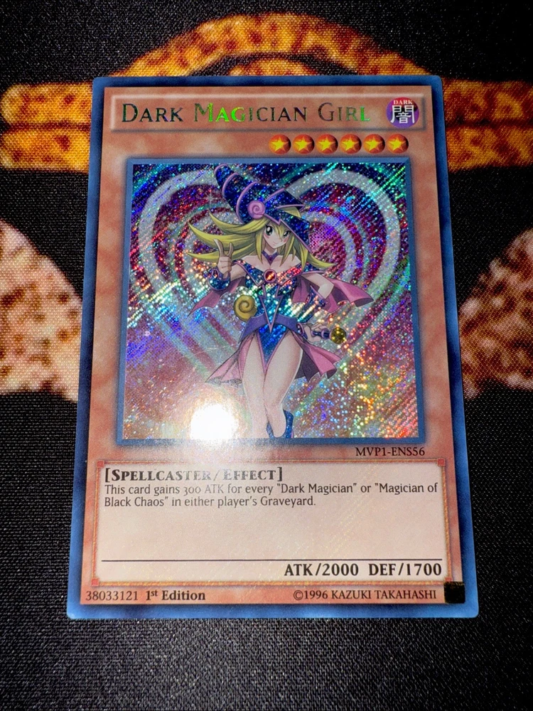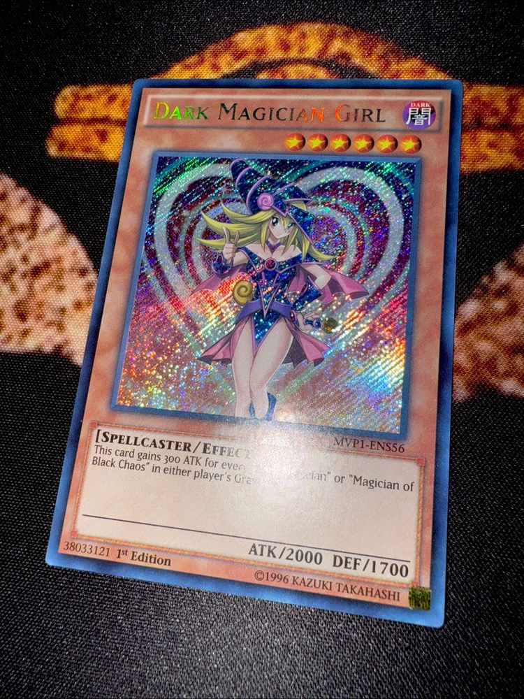 🔥YUGIOH • DARK MAGICIAN GIRL • SECRET RARE • MVP1-ENS56 • 1st EDITION • NM🔥 Card Sleeve Included + Top Loader • Never Play Near Mint card • Authentic Konami USA Version YOU ARE GUARANTEED TO GET THE CARD NAMED IN THE TITLE. Thank you.