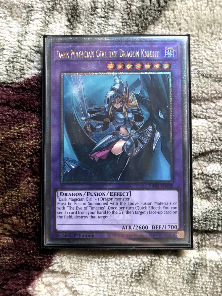This stunning Quarter Century Rare card is a must-have for any Yu-Gi-Oh! fan! The artwork on Dark Magician Girl The Dragon Knight is absolutely gorgeous, with a premium holographic finish that makes it stand out. As a dark-attribute knight monster, it’s not just a collector’s dream but also a strong addition to any deck. The rarity and quality make it a fantastic investment for both players and enthusiasts. If you love unique, high-value cards, this one’s a winner!