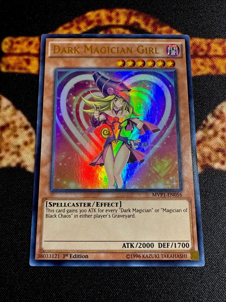 🔥 YUGIOH • DARK MAGICIAN GIRL • ULTRA RARE • MVP1-EN056 • 1st EDITION • NM 🔥 Card Sleeve Included + Top Loader •Never Play Near Mint card • Authentic Konami USA Version YOU ARE GUARANTEED TO GET THE CARD NAMED IN THE TITLE. Thank you.