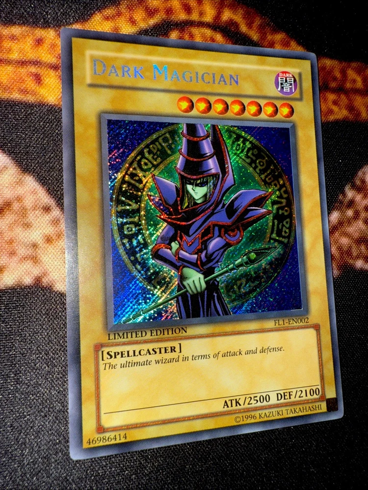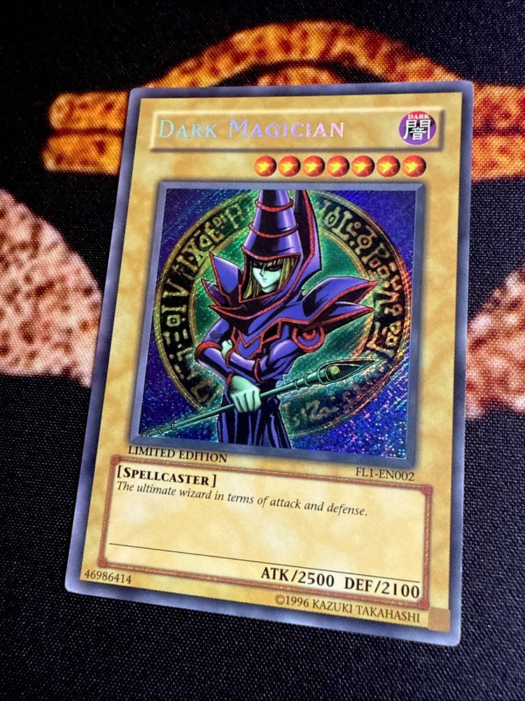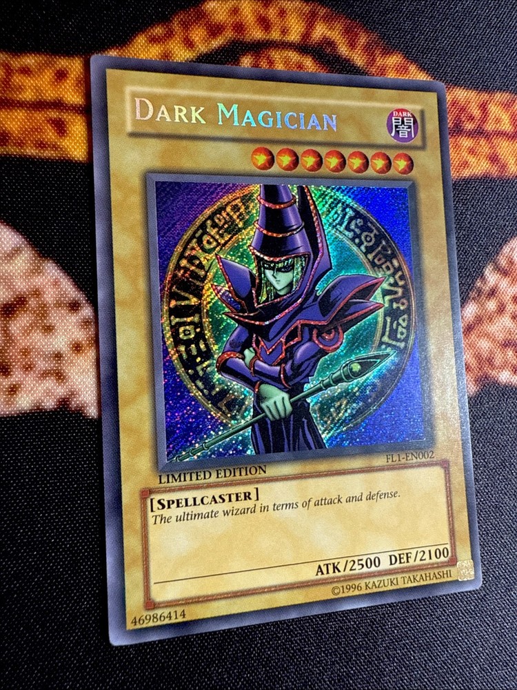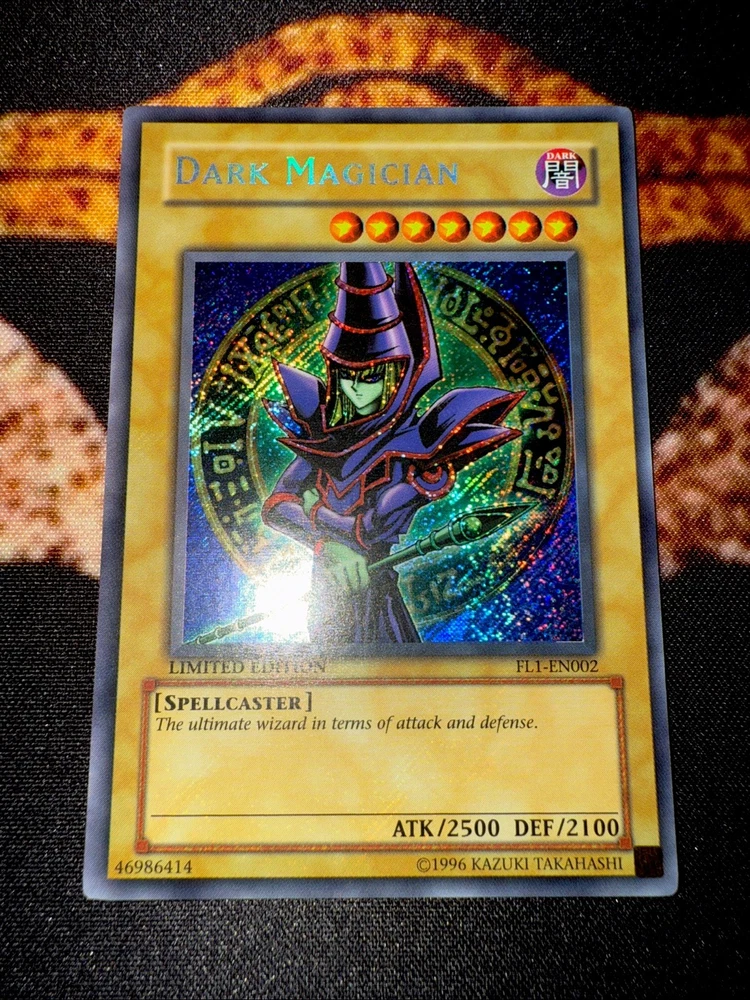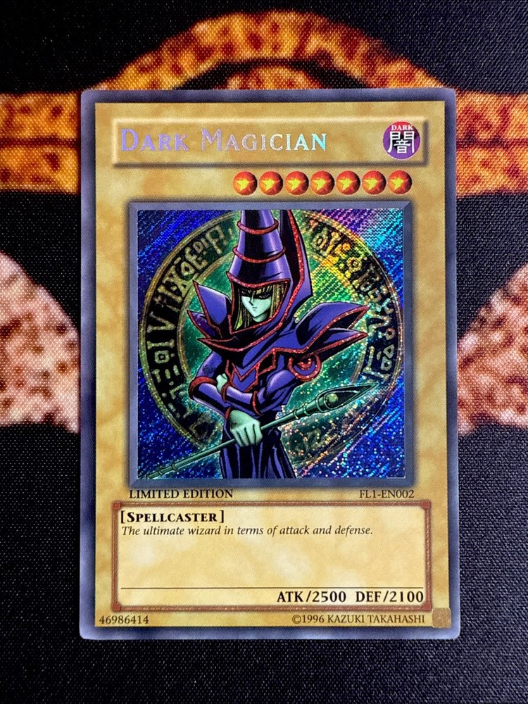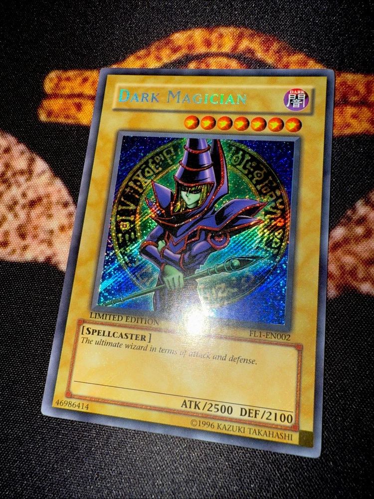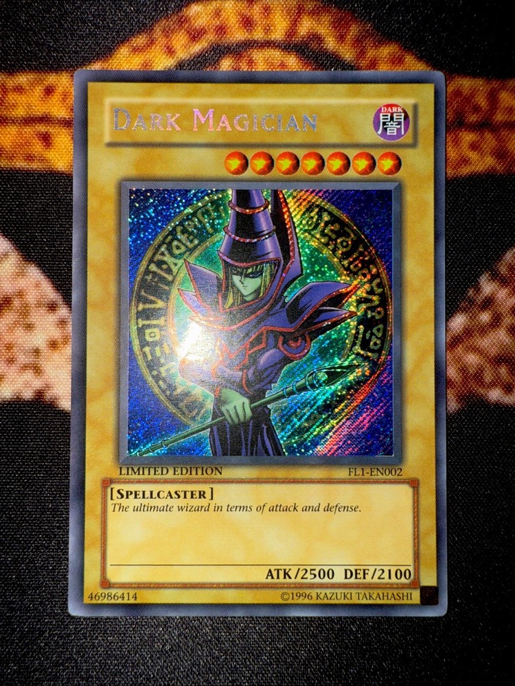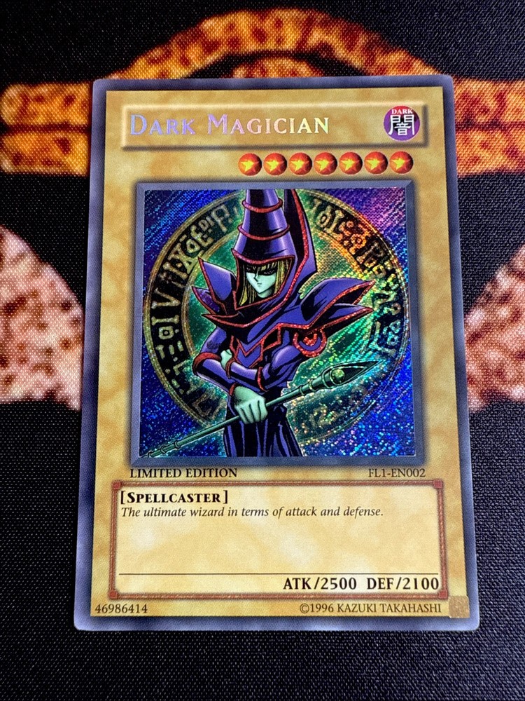 🔥 YUGIOH • DARK MAGICIAN • SECRET RARE • FL1-EN002 • LIMITED EDITION • VLP 🔥 Card Sleeve Included + Top Loader • VERY LIGHTLY PLAY CARD • Authentic Konami USA Version YOU ARE GUARANTEED TO GET THE CARD NAMED IN THE TITLE. Thank you.