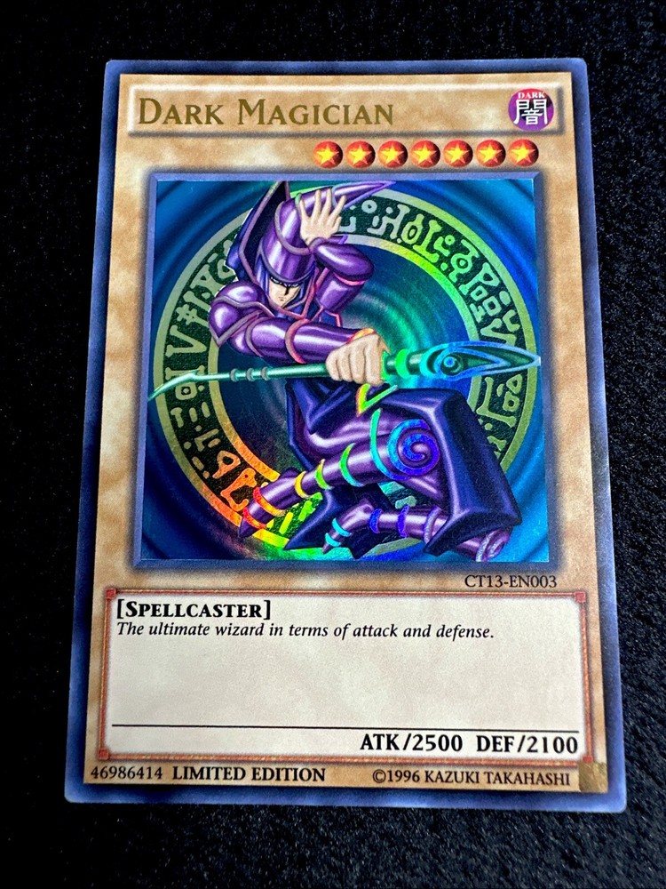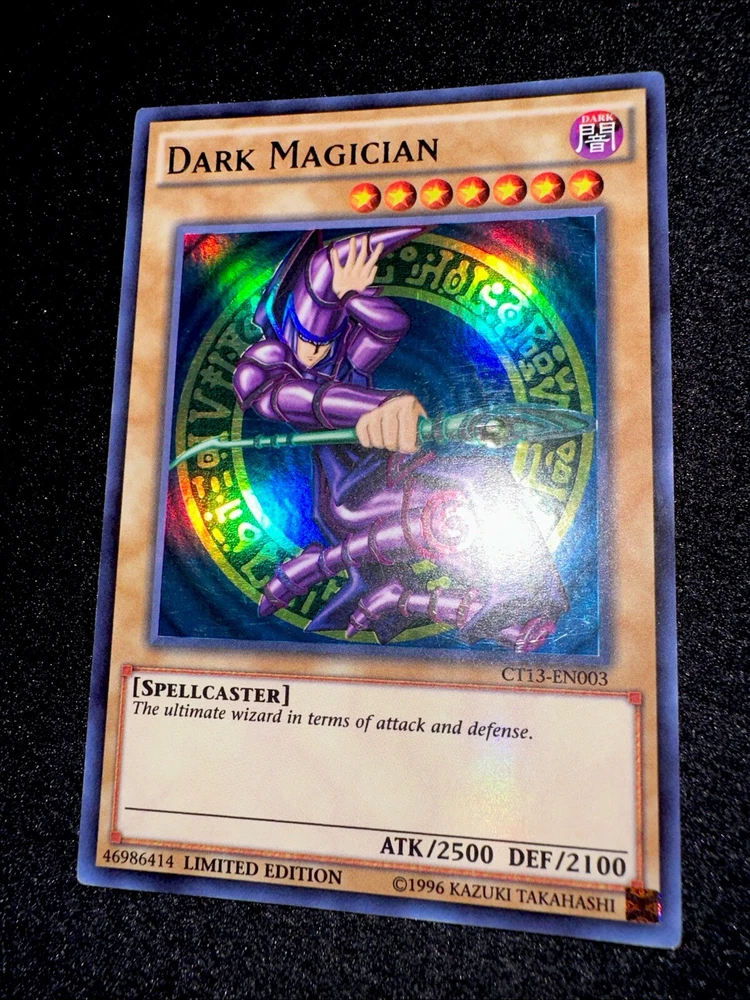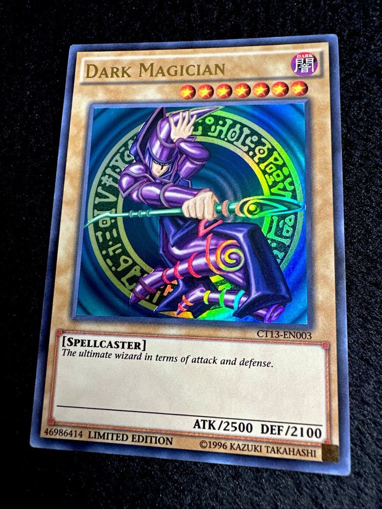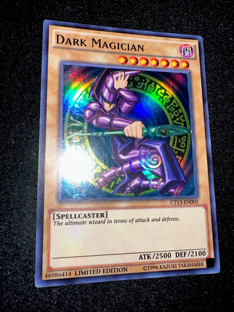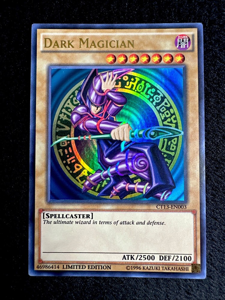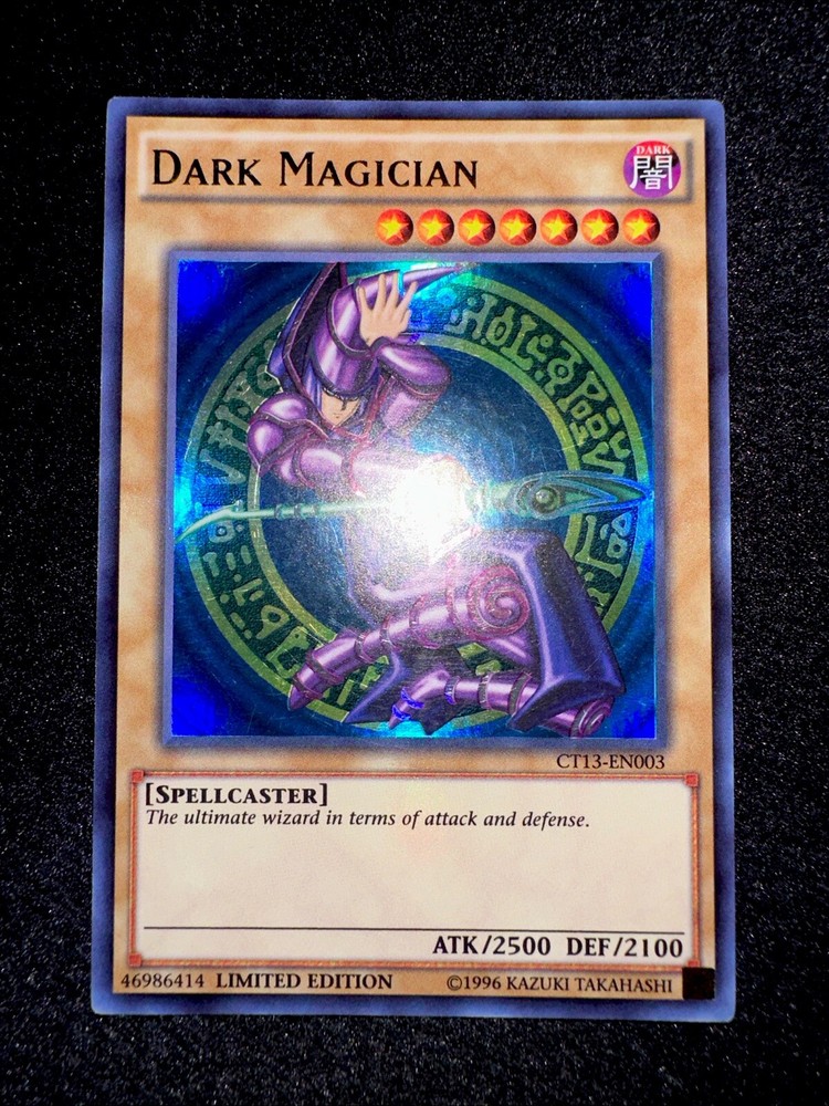 🔥 YUGIOH • DARK MAGICIAN • ULTRA RARE • LIMITED EDITION • CT13-EN003 • VLP 🔥 Card Sleeve Included + Top Loader • VERY LIGHTLY PLAY CARD • Authentic Konami USA Version YOU ARE GUARANTEED TO GET THE CARD NAMED IN THE TITLE. Thank you.