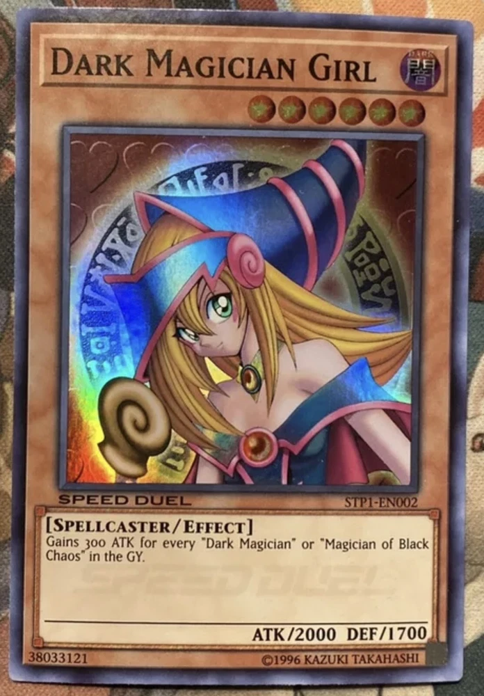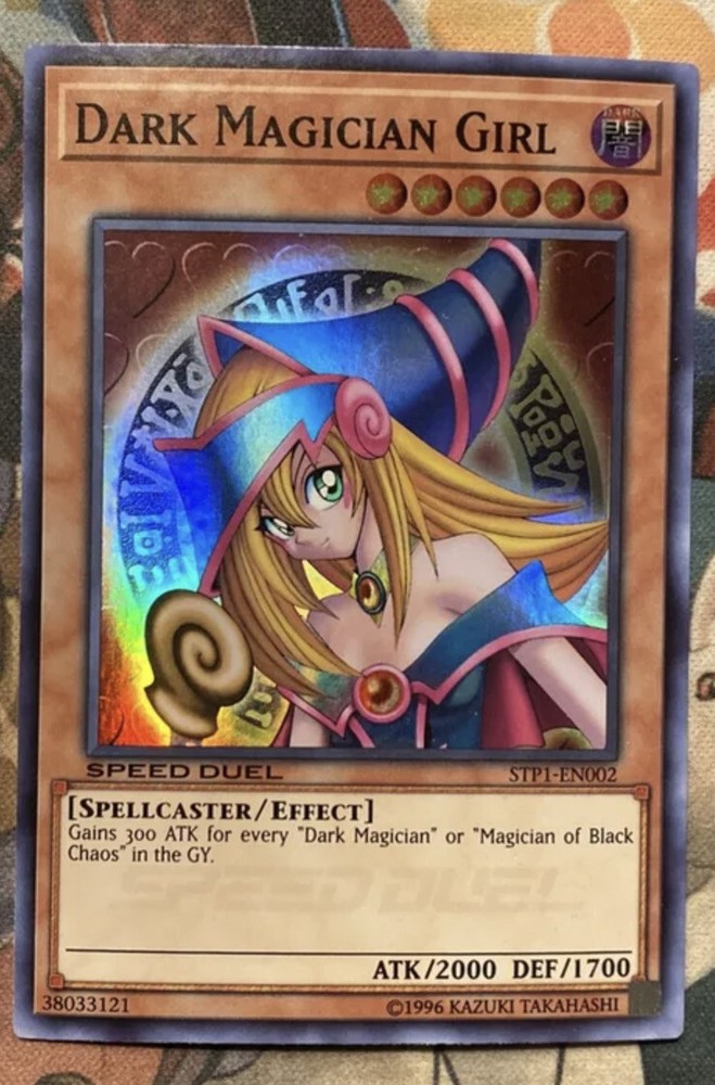 🔥 YUGIOH Dark Magician Girl STP1-EN002 SUPER RARE HOLOFOIL NEAR MINT 🔥 This item will be sent in a plastic sleeve/deck protector sleeve and in a toploader for maximum protection. Shipping is FREE! Payment is due immediately. The faster the payment the faster i'll ship out. Questions or comments?? Feel free to contact me. I'll get back to you within 24 hours. Check out my eBay store for more Yugioh items! Dark Magician Girl is a popular card in the Yu-Gi-Oh! trading card game. She is a level 6 spellcaster-type monster with 2000 attack points and 1700 defense points. Her appearance is that of a young girl wearing a blue and pink outfit, with a large hat and a wand. She is a support card for the iconic Dark Magician, and her effect allows her to gain 300 attack points for each Dark Magician in either player's graveyard. She is a beloved character in the Yu-Gi-Oh! franchise, with a recognizable design and memorable role in the anime and manga.