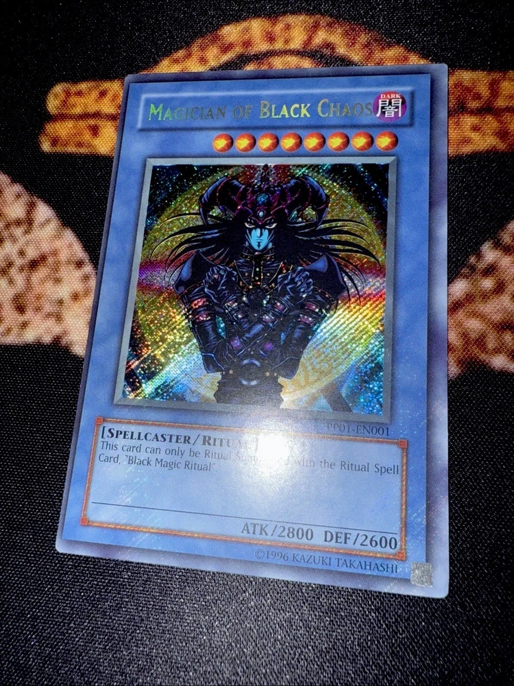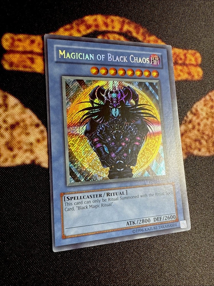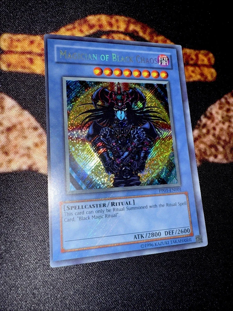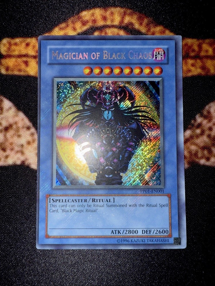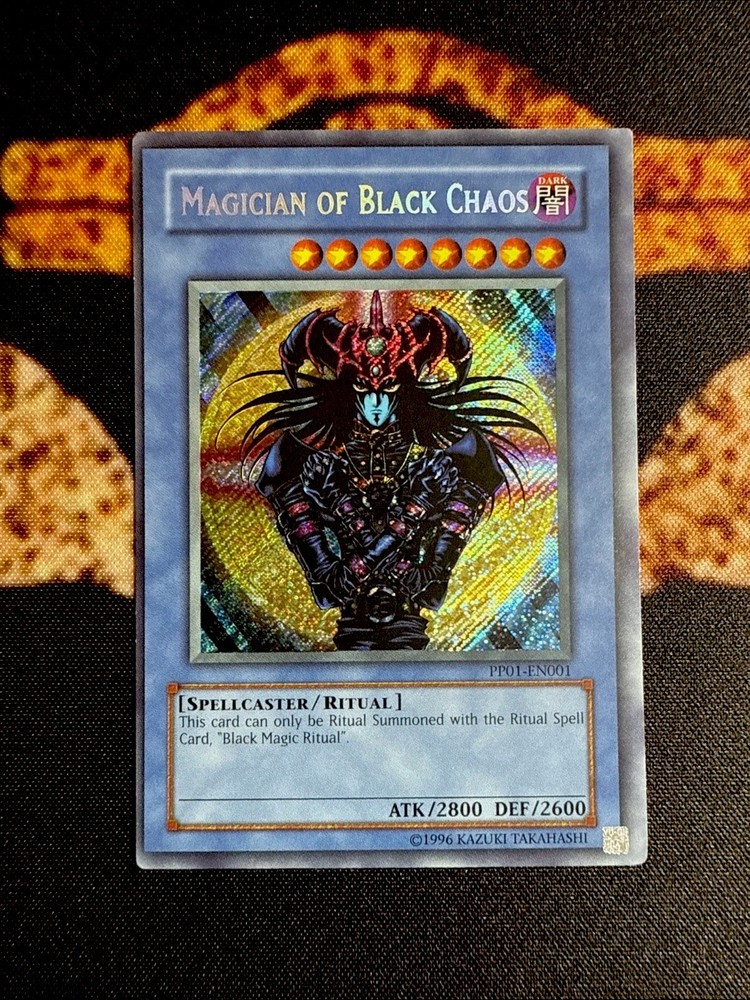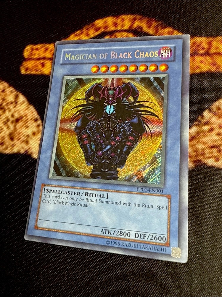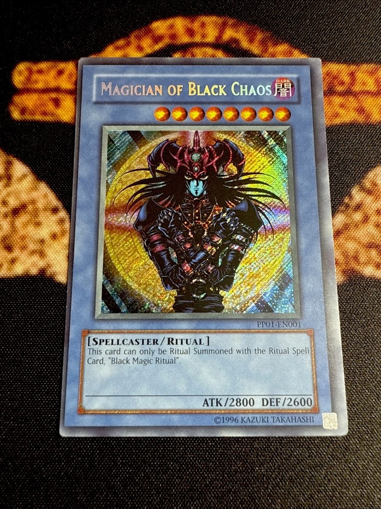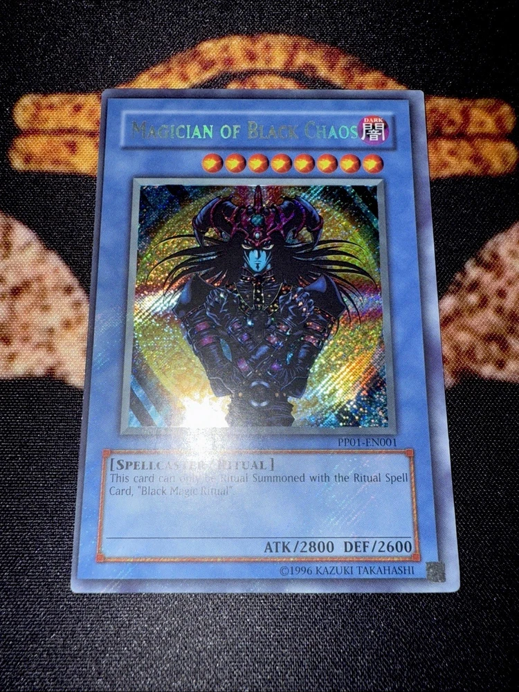 YUGIOH • MAGICIAN OF BLACK CHAOS • SECRET RARE • PP01-EN001 • PREMIUM PACK • VLP Card Sleeve Included + Top Loader • VERY LIGHTLY PLAY CARD • Authentic Konami USA Version YOU ARE GUARANTEED TO GET THE CARD NAMED IN THE TITLE. Thank you.