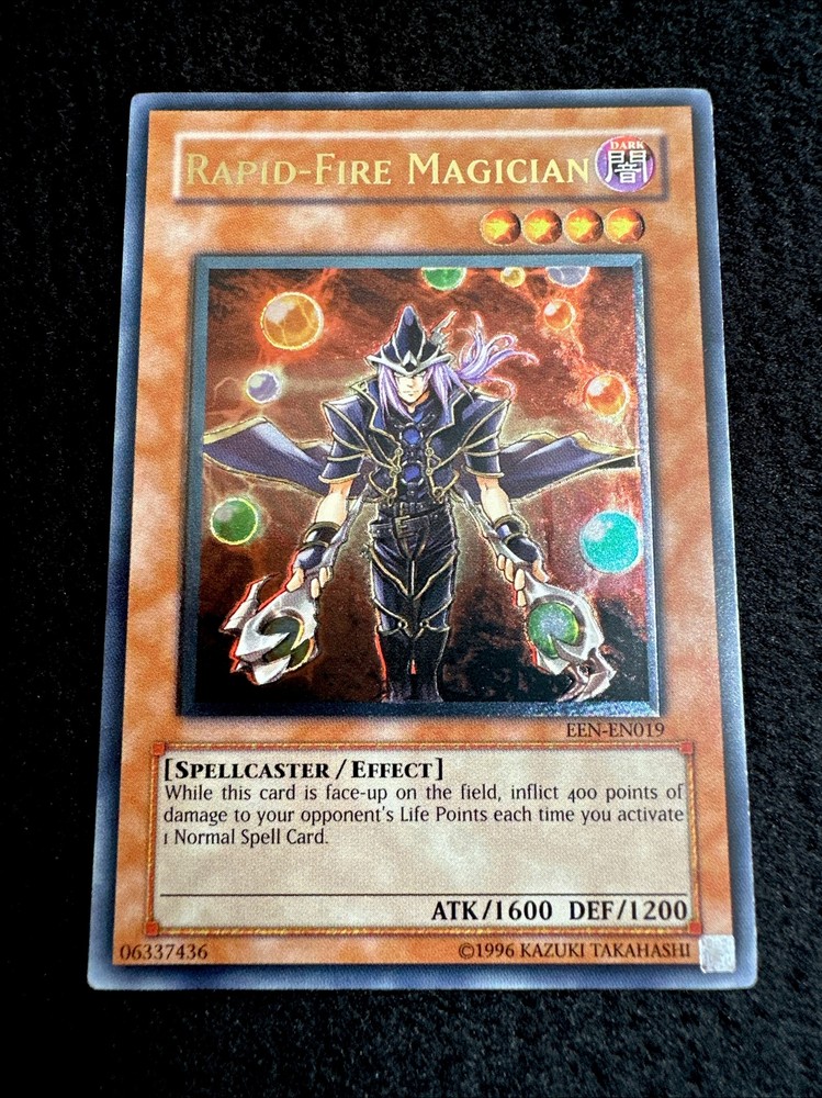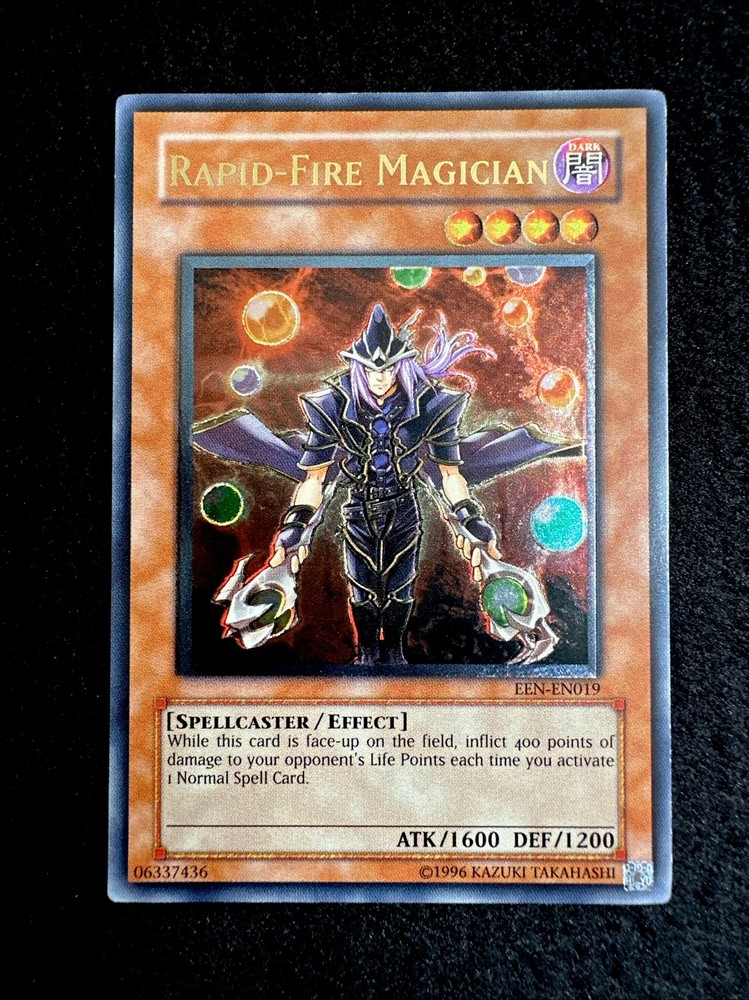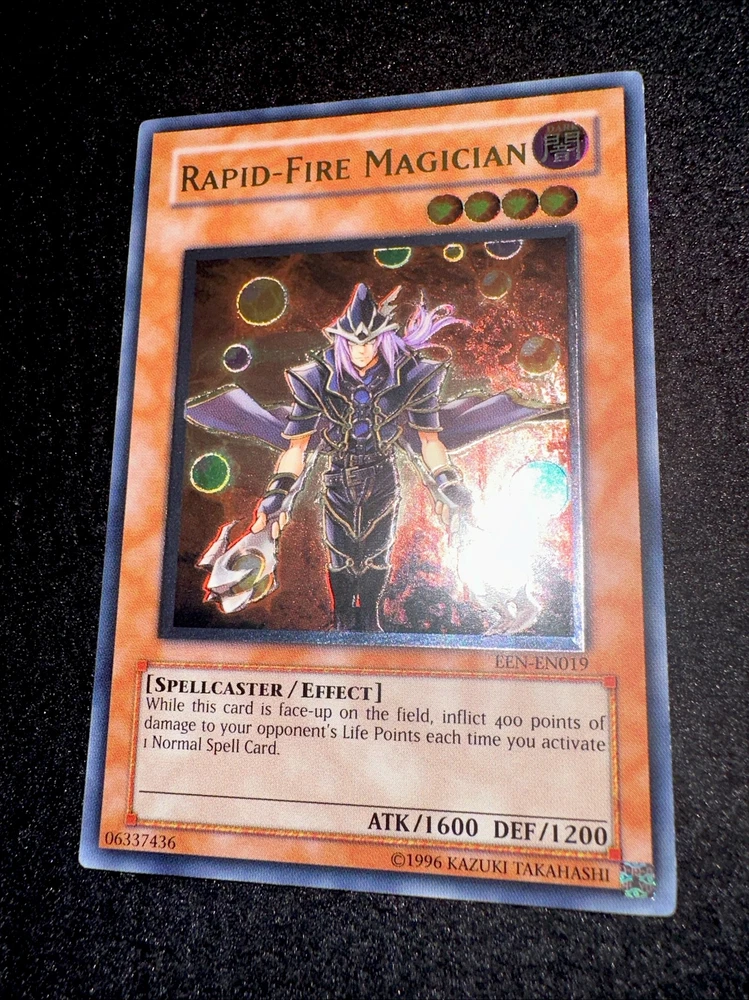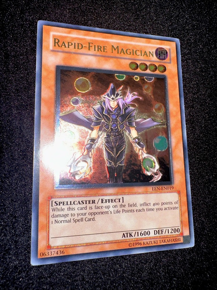 🔥YUGIOH • RAPID FIRE MAGICIAN • ULTIMATE RARE • EEN-EN019 • UNLIMITED • NM🔥 Card Sleeve Included + Top Loader • Never Play Near Mint Card • Authentic Konami USA Version YOU ARE GUARANTEED TO GET THE CARD NAMED IN THE TITLE. Thank you.