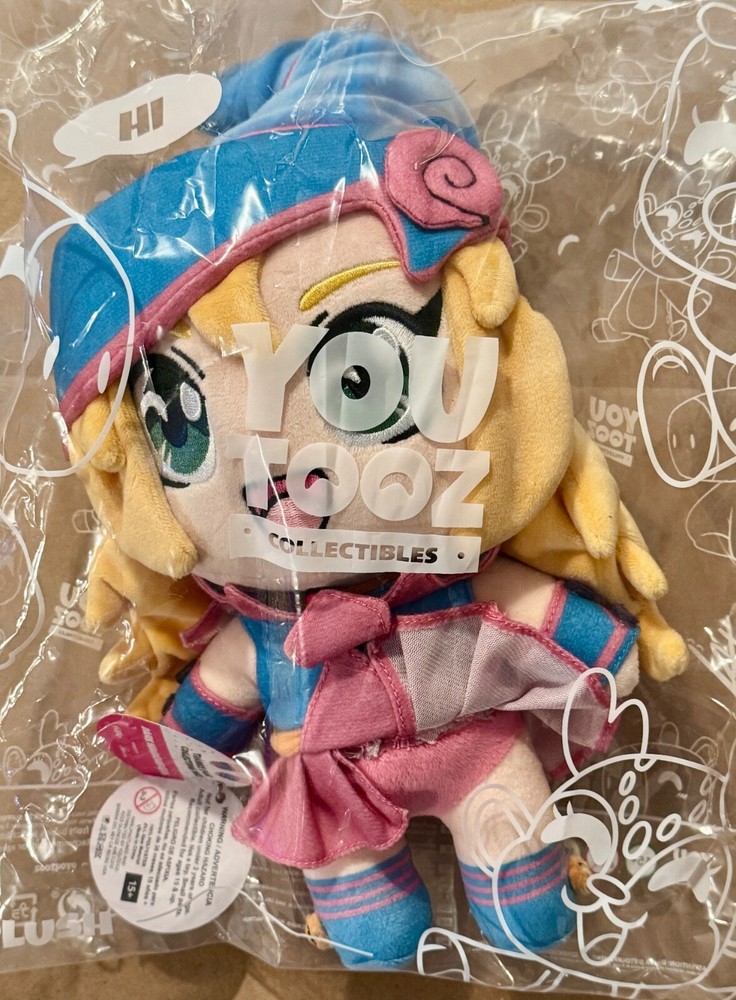 Yu-Gi-Oh Dark Magician Girl 9-Inch Plush : The cutest spellcaster around returns to Youtooz with the most adorable plush magic can conjure! Standing at 9-inches tall with a curved blue and pink helmet curving up from above her golden locks which frame the emerald green eyes of her smiling face and fall down her back, her pale blue outfit is covered in a sharp pink trim as she wears a pink pleated skirt, knee high boots and wrist guards.This plush is packed to the seams with 100% PP cotton and is made of a mixture of minky and felt materials, absolutely perfect for cuddling or casting some spells with! Ages 15 and up. Yu-Gi-Oh! is a Japanese anime based off a manga of the same name and has spawned the incredibly popular TCG with millions of players worldwide! The story follows Yugi Muto and Yami Yugi (who resides inside him) as he and his friends protect the world from the Millennium items falling into the wrong hands the only way they know how, by battling with Duel Monsters!