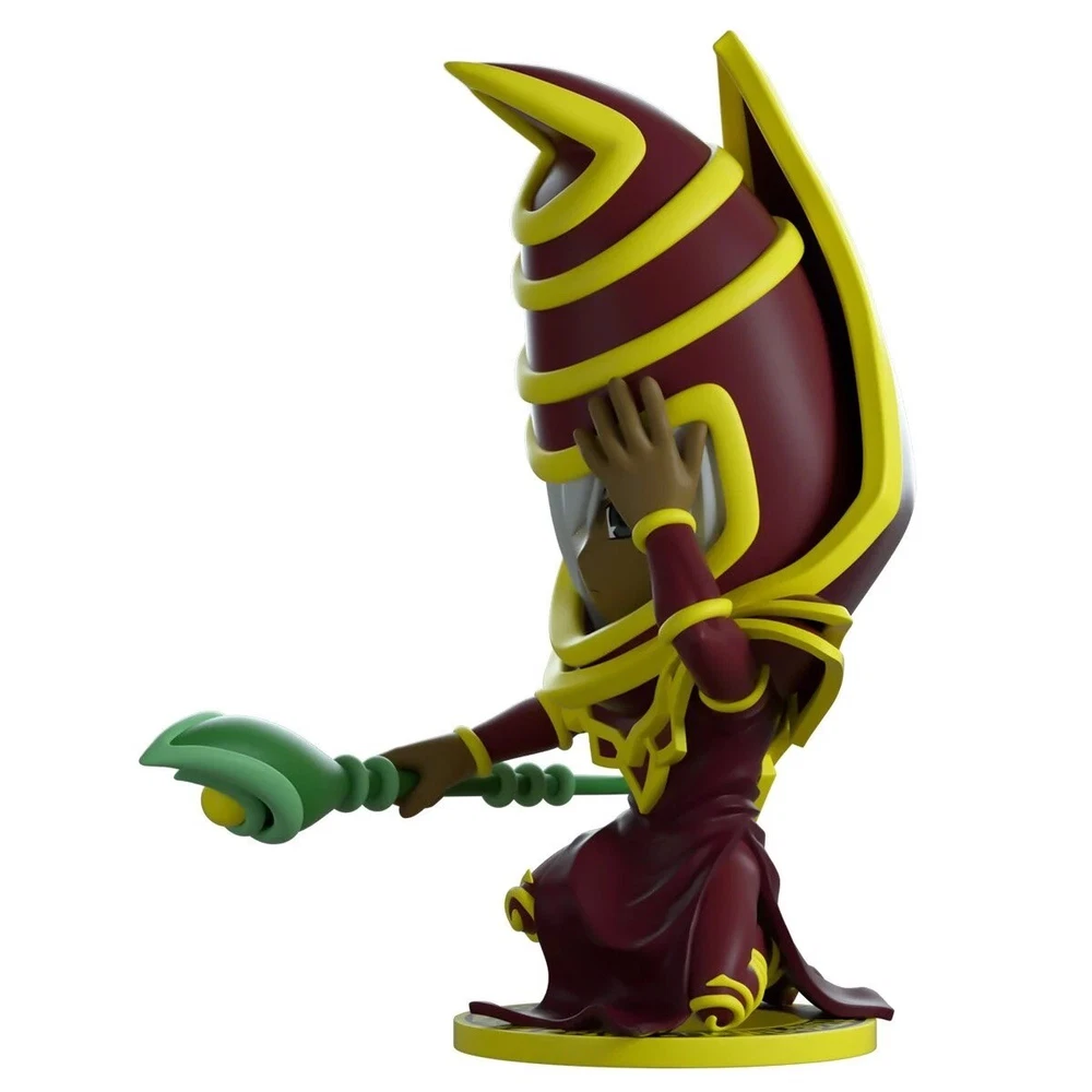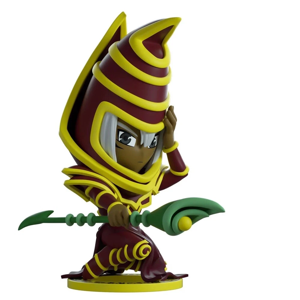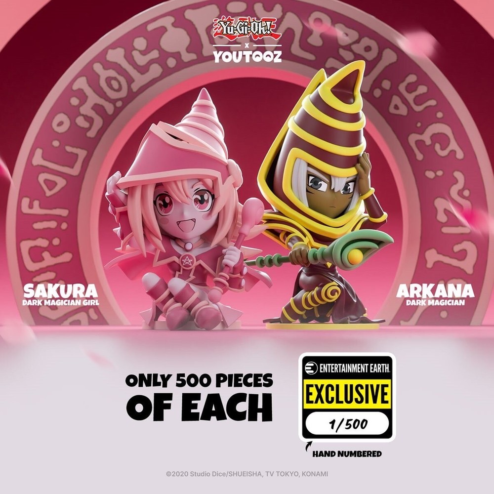 Yu-Gi-Oh! Dark Magician Arkana EE Exclusive: "Go Dark Magician, Attack!" Entertainment Earth Exclusive! We’ve defeated Arkana to take his Dark Magician as our very own with their return to Youtooz! Kneeling at 5-inches tall with his long green staff pointed forward readying a masterful spell, he holds onto the hood of his maroon robe that raises up into a point with a bright yellow trim. A look of determination crosses his dark face as grey hair pokes through the opening of his hood, while his pointed robe and chest piece sit over a flowing maroon cape that pulls away from his arms and legs which are covered in a tight material and are adorned with intricate swirling patterns. The exterior of his packaging sees Dark Magician with his arms outstretched in front of a blast of golden light. While the interior is deep maroon with strings of hieroglyphs that work their way onto the protective packaging, where he poses in front of a circular golden seal as his figure can be seen through the large clear window at its front. This limited edition hand-numbered exclusive ships in a matte, embossed, protective outer sleeve, and a custom sized plastic protector for maximum protection during shipping. Yu-Gi-Oh! is a Japanese anime based off a manga of the same name and has spawned the incredibly popular TCG with millions of players worldwide! The story follows Yugi Muto and Yami Yugi (who resides inside him) as he and his friends protect the world from the Millennium items falling into the wrong hands the only way they know how, by battling with Duel Monsters!