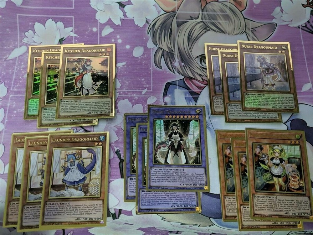 Hey guys I am new to Ebay so give me feedback or ask questions if your unsure about something. I am in grad school and I work full time so my items take a little longer to Ship! Please Allow me the Set Handling time before your item will be shipped! It may take the full handling time set Thank You!!! Happy Bidding!!! **Picture may have been edited due to Inventory Changes Please read description Below.** Shipping - All orders will be shipped with bubble mailer and a protective case. - I ship to both Domestic (U.S.) and International destinations! Payment - Please pay within 3 days of your order to avoid an Unpaid Item Case. This just helps me run things smoothly for other bidders/buyers and myself. Will appreciate if you please leave feedback when you receive your item, and I will leave feedback as well. Contact me if anything is wrong with your order so I can have a chance to fix the issue- Your satisfaction is most important! **If you are a international buyer, Customs Fees are the responsobility of the Buyer** A bonus for ordering you will also Get a Free Holo Card from my collection. It maybe Super Rare, Ultra Rare, or SECRET Rare!!! As a Bonus Gift for buying my auction you will Recieve a Bonus Free Holo Card. It can be Super Rare, Ultra Rare, or Secret Rare or even GHOST Rare!!! You will receive the following items: 40 CARD DRAGONMAID DECK: Extra Deck Cards (15): 3x Dragonmaid Sheou (Secret Rare) 3x House Dragonmaid (Ultra Gold Rare) 1x Hieratic Sphere of the Heavenly Spheres (Ultra Rare) 1x Dharc the Dark Chamer, Gloomy (Super Rare) 1x Lyna the Light Charmer, Lustrous (Ultra Rare) 1x Wynn the Wind Charmer, Verdant (Rare) 1x Hiita the Fire Charmer, Ablaze (Rare) 1x Knightmare Unicorn (Rare) 1x Knightmare Phoenix (Rare) 1x Salamangreat Almiraj (Rare) 1x Striker Dragon (Rare) Monster Cards (15): 3x Chamber Dragonmaid (Ultra Gold Rare) 3x Kitchen Dragonmaid (Ultra Gold Rare) 3x Parlor Dragonmaid (Ultra Gold Rare) 1x Laundry Dragonmaid (Ultra Gold Rare) 1x Nurse Dragonmaid (Ultra Gold Rare) 1x Dragonmaid Lorpar (Secret Rare) 1x Dragonmaid Ernus (Super Rare) 1x Dragonmaid Tinkhec (Super Rare) 1x Red-Eyes Darkness Metal Dragon Spell Cards (21): 3x Dragonmaid Hospitality (Rare) 2x Dragonmaid Changeover (Super Rare) 1x Dragonmaid Welcome (Secret Rare) 1x Dragonmaid Send-Off (Super Rare) 3x World Legacy Guardragon (Super Rare) 3x Pot of Extravagance 1x Boot Sector Launch 1x Dragon's Mirror 1x Dragon Shrine 1x Mind Control 1x Called by the Grave 3x Cosmic Cyclone Trap Cards (4): 1x Dragonmaid Downtime (Super Rare) 3x Dragonmaid Tidying