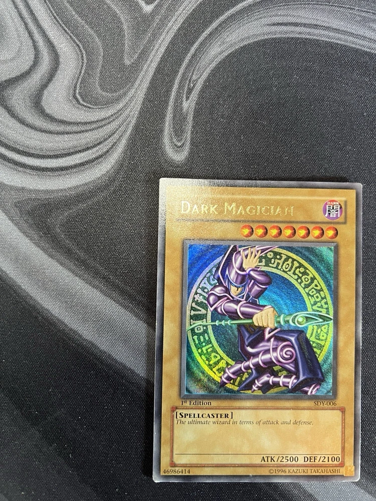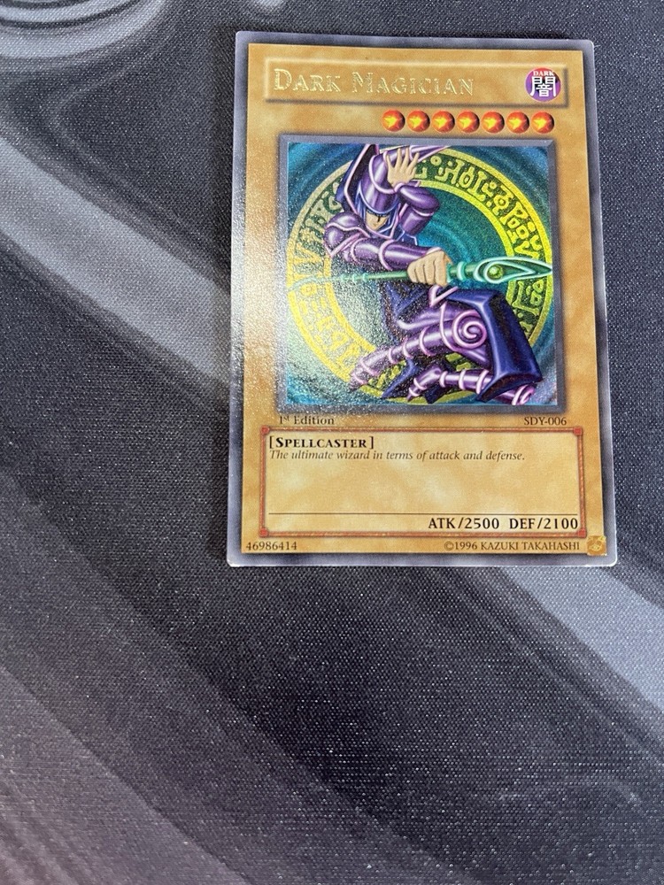 I am selling my SDY-006 1st Edition Dark Magician with a heavy holo bleed. Please ask if you have further questions. The sale is made under the exclusion of any warranty.