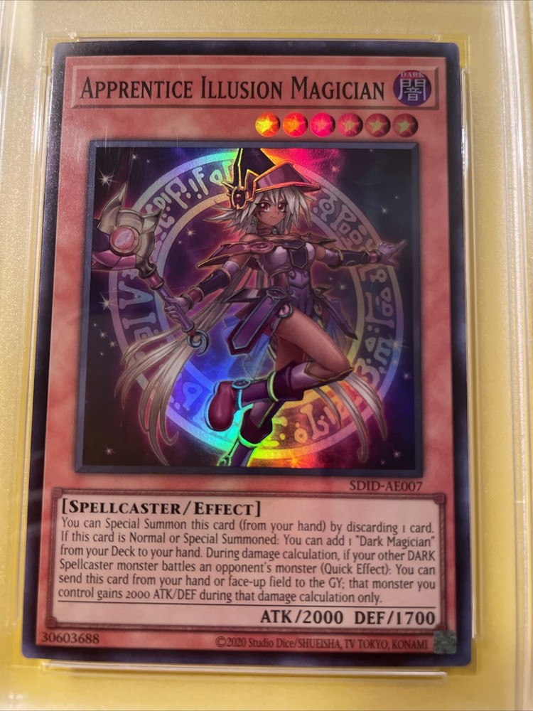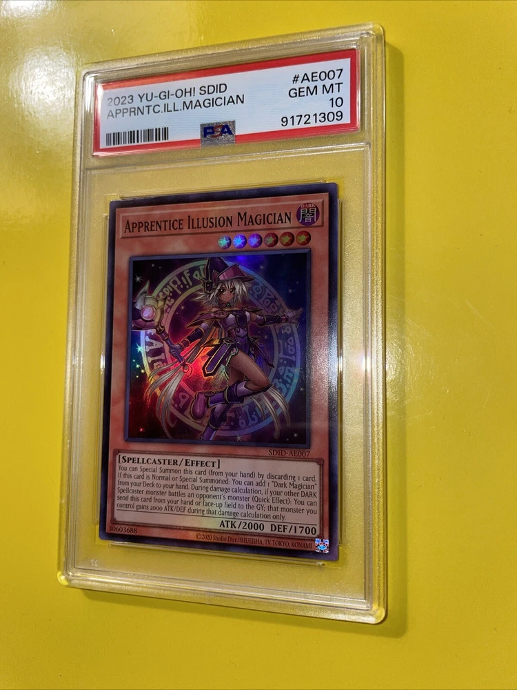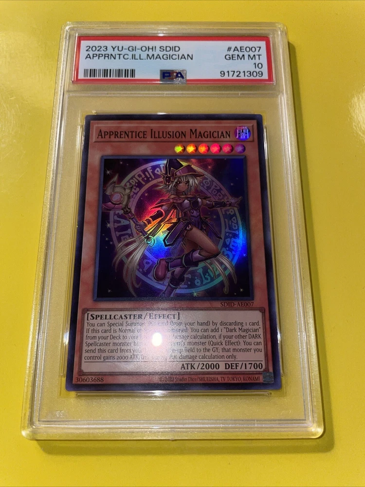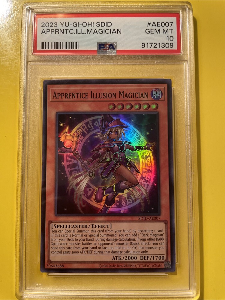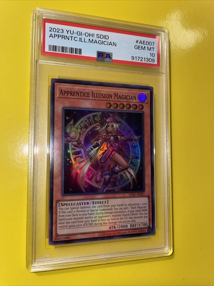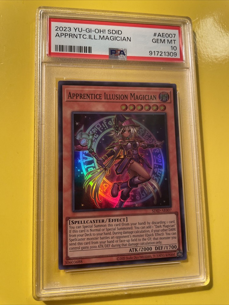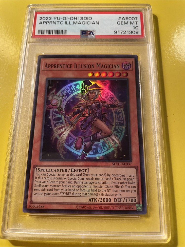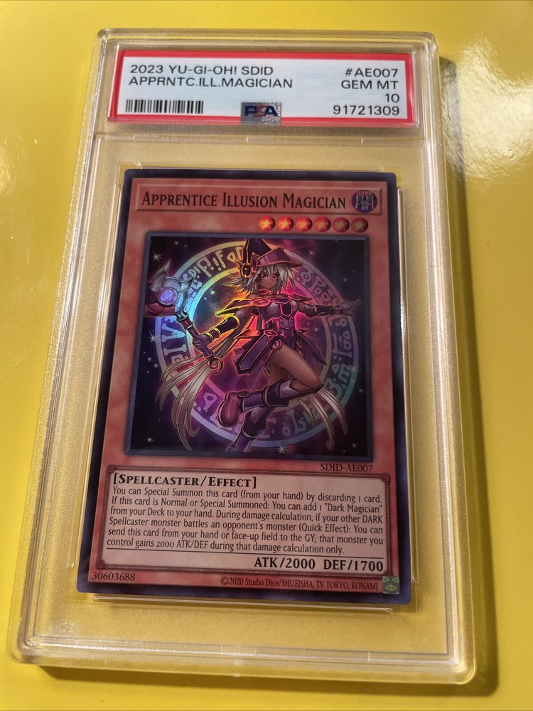 YuGiOh APPRENTICE ILLUSION MAGICIAN #SDID-AE007🔥PSA 10 GEM MINT🔥ASIAN/ENGLISH EDITION-2023 SUPER RARE. POP 11………….. PLEASE VIEW PICS ITS THE EXACT CARD IM SELLING.