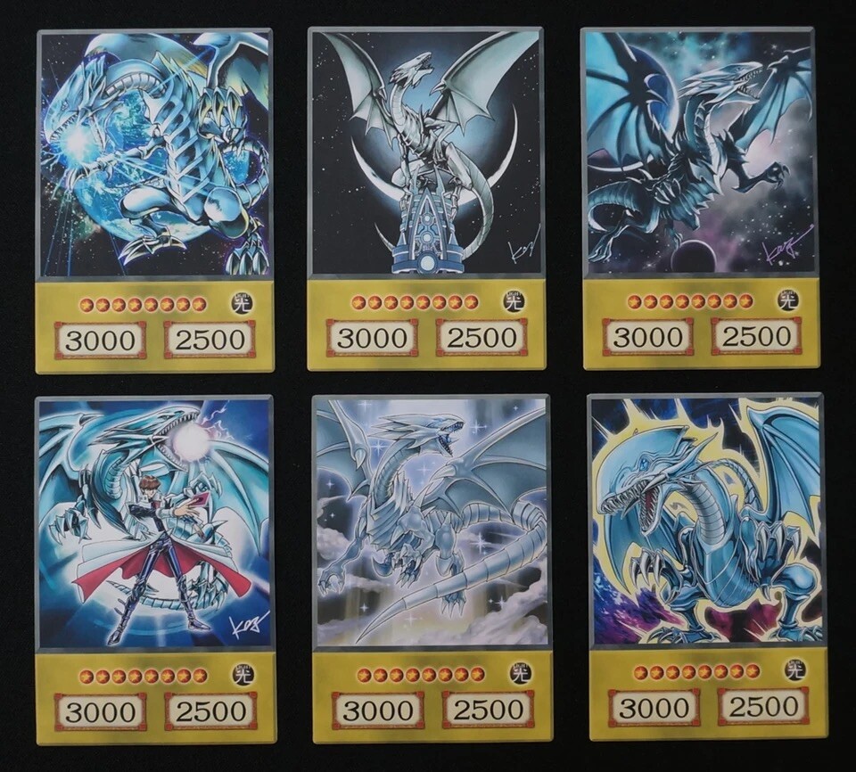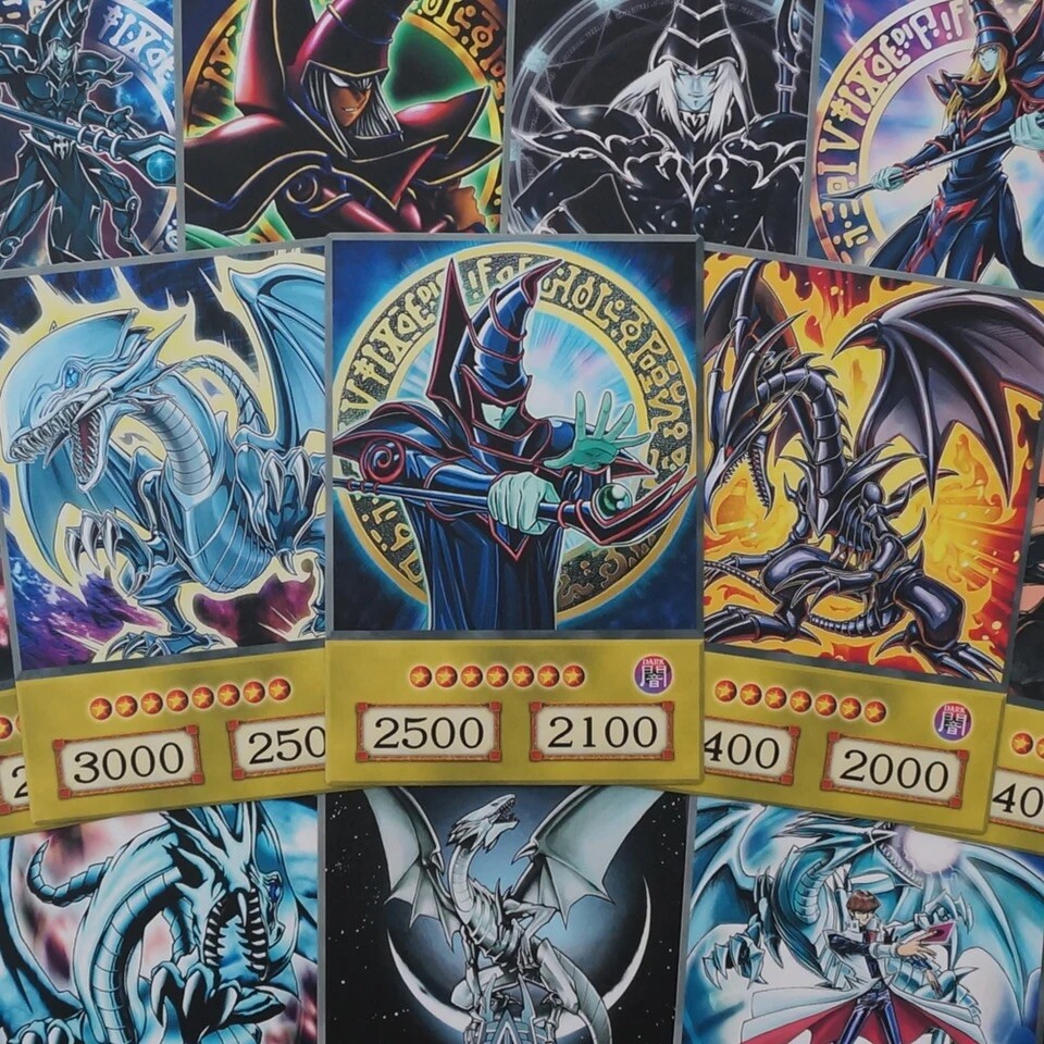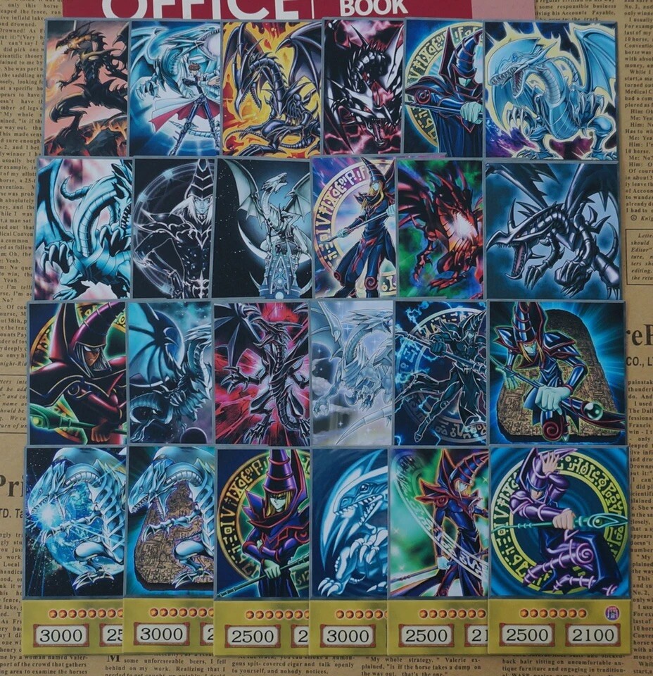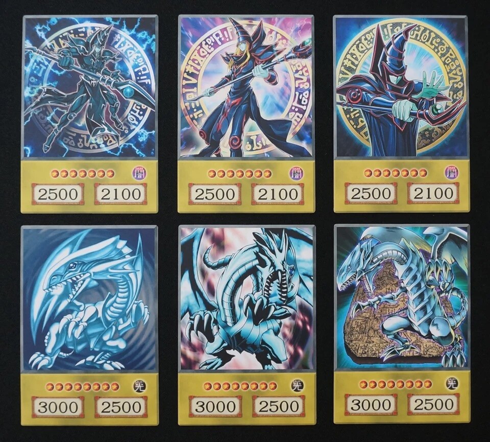 This anime style yugioh card set features Yugi Kaiba and Joey’s most iconic cards, Dark Magician, Blue Eyes White Dragon, Red Eyes Black Dragon in all their respective alternate artwork styles. These collectible anime style cards are perfect for fans of the Yu-Gi-Oh! series, featuring the legendary monsters in all their glory. The cards feature the image of the monsters, making them a must-have addition to any collector's CCG individual cards collection..
