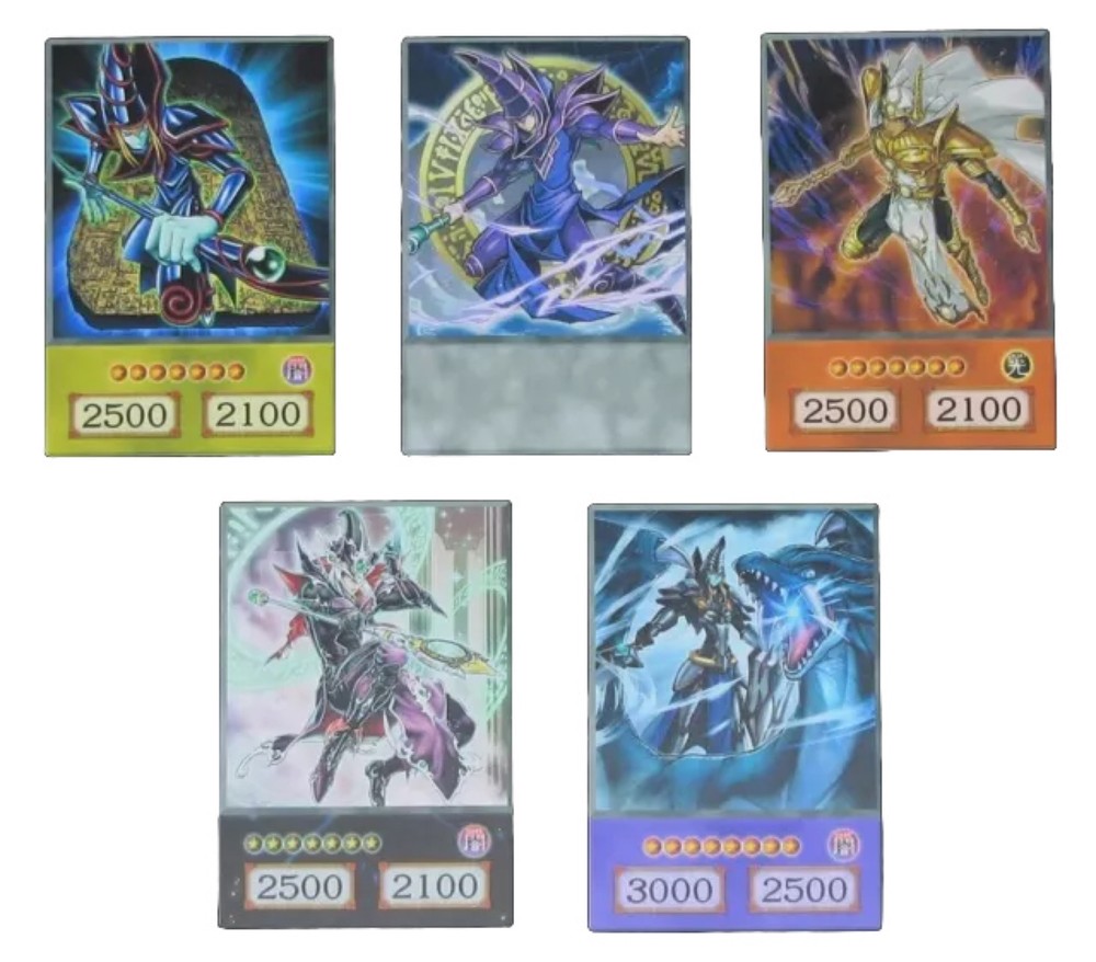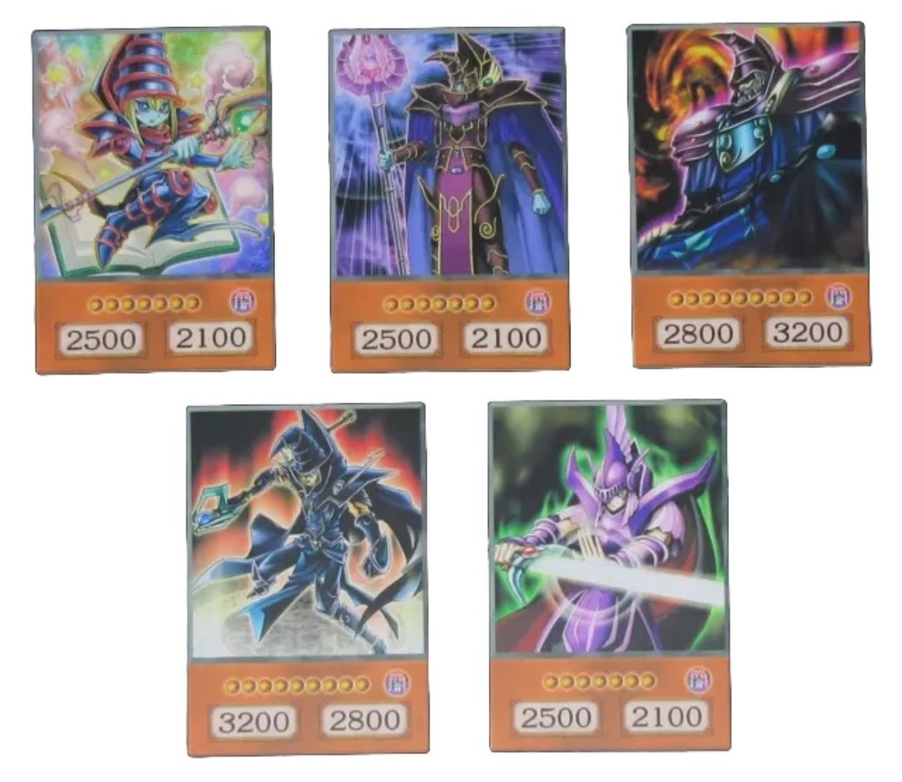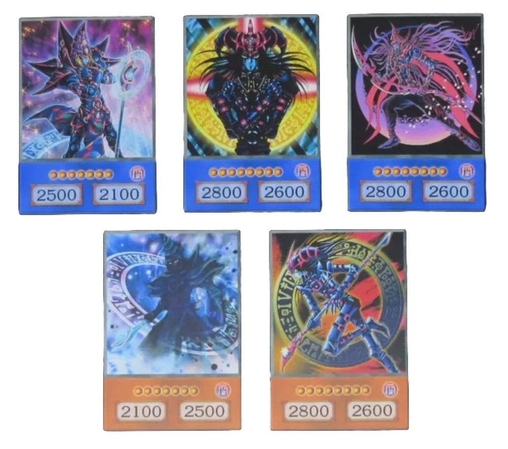 This anime style yugioh card set features the pharaoh Yami Yugi’s iconic Dark Magician cards, magician of chaos, red eyes dark dragoon, dark magician, dark sage, dark paladin etc These collectible anime style cards are perfect for fans of the Yu-Gi-Oh! series, featuring the legendary monsters in all their glory. The cards feature the image of the monsters, making them a must-have addition to any collector's CCG individual cards collection..