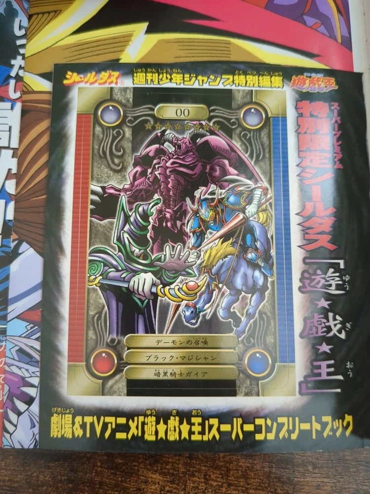 This Yu-Gi-Oh! TCG card is the Super Complete Book with Sealdass Dark Magician, Summoned Skull, and Gaia No.00 Promo. It features a Japanese card size and is made of paper material with a holo finish. The card is from the Yugi set, manufactured by Bandai in 1999. The card type is normal and the stage is Super Complete Book. It is a vintage card. The book and card are perfect for collectors and players of the Yu-Gi-Oh! TCG game.