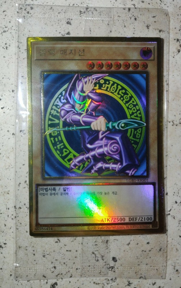 YuGiOh! Card "Dark Magician" - GOLD ULTIMATE RARE - SEALED PLASTIC MINT FACTORY SEALED IN PLASTIC WRAPPING, PLEASE SEE THE PHOTOS! MINT CONDITION FOR COLLECTORS! ABSOLUTELY GORGEOUS HOLOGRAPHIC CARD, PLEASE LOOK AT ALL PHOTOS IN THE LISTING! ABSOLUTELY A MUST HAVE card for all collectors! The card is in Mint / NM condition. Condition is New. Shipped with USPS First Class Package. 100% AUTHENTIC BUY WITH CONFIDENCE This card is in the Korean language. Please note that this is not the English version of the card. You will receive the card in the photos in my listing in a safe protective hard case. Thank you for looking at my listing.