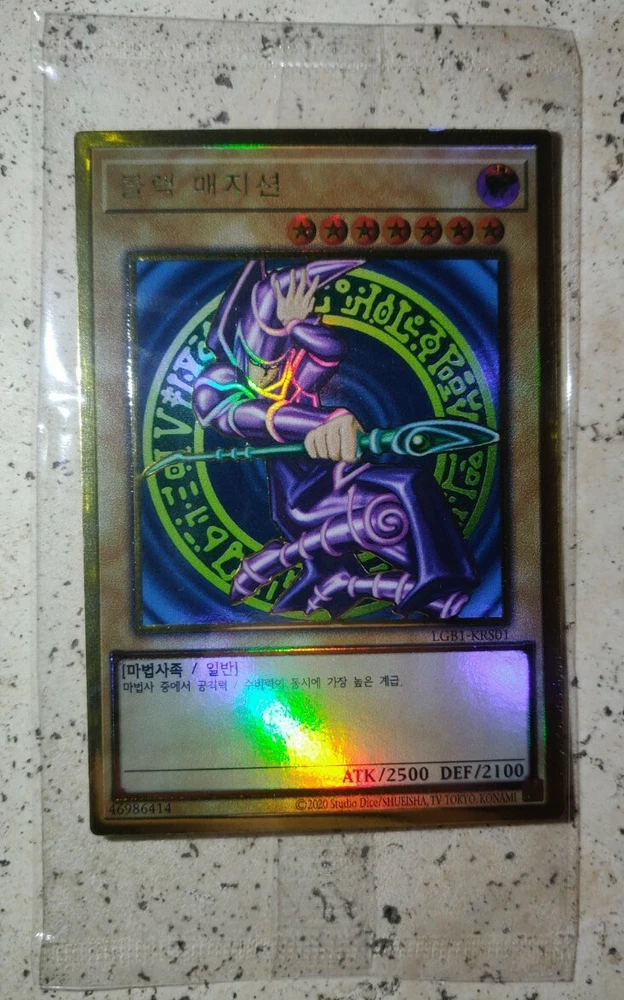 This stunning Gold Ultimate Rare Dark Magician is a collector's dream! The holographic finish shines brilliantly, and the card arrives factory-sealed in perfect mint condition. The Korean version adds a unique touch, making it stand out in any collection. Packaged securely and shipped fast, this is a must-have for serious YuGiOh! enthusiasts. Authentic, gorgeous, and absolutely worth it!