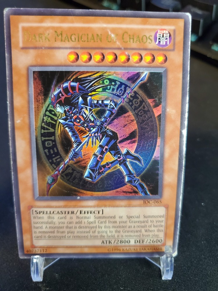 This Yu-Gi-Oh card features the powerful and rare Dark Magician of Chaos, with a stunning ultra-rare holo design. It comes from the popular Yugi set and was manufactured by Konami. Its gameplay attributes include the color of Darkness, making it a coveted addition to any player's deck. The card's condition has been described as "played," but this does not detract from its value and collectible status. Add this unique and rare card to your collection today.