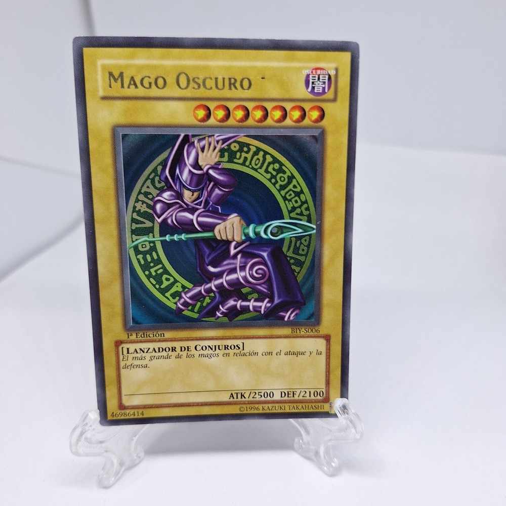 The YuGiOh! Dark Magician card is a 1st Edition Ultra Rare card from the Yugi set, featuring the iconic monster in Spanish as "Mago Oscuro." This Japanese card is in a foil finish and has the card number BIY-S006. MAGO OSCURO Manufactured by Konami for the Yu-Gi-Oh! TCG, this collectible card game item appeals to players aged 6 and up who enjoy strategic gameplay with powerful monsters like the Dark Magician. PLEASE LOOK AT THE PHOTOS FOR DETAILS AND CONDITIONS Before leaving neutral or negative feedback, please contact us before hand so we can discuss the issue. Feelfree to message me with any questions.