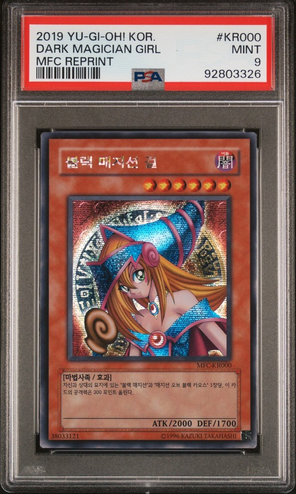 Korean Yu-Gi-Oh!: PSA 9 [MINT] DARK MAGICIAN GIRL [POPULATION 1 OF 48] - Population Link 2019 YU-GI-OH! KOREAN MAGICIAN'S FORCE REPRINT Selling: Korean Dark Magician Girl Graded PSA 9 [MINT] from the 2019 Yu-Gi-Oh! Korean Magician's Force Reprints. Current population of this card is 1 of 48 PSA 9's. All cards were pulled with video documentation & submitted for grading by the seller. Video Link PSA Certification