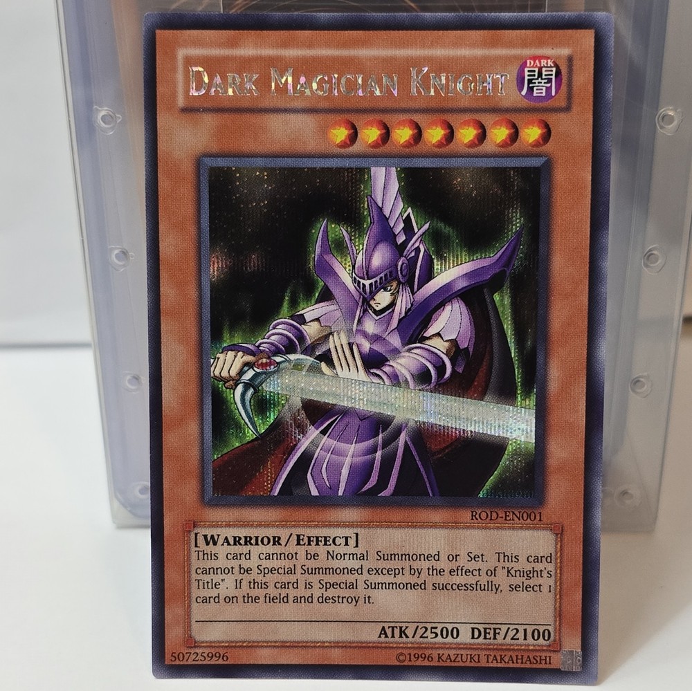 Dive into the realm of spell-casting battles with the Yu-Gi-Oh! TCG Dark Magician Knight, a Super Parallel Rare card that stands out with its striking foil finish. As part of the Promo Cards set, this card is a must-have for collectors and players alike, featuring the enigmatic attributes of Darkness and bearing the unique card number ROD-EN001. Konami's craftsmanship shines through with this Effect-type card that comes in English and is suitable for ungraded collection or play. The Dark Magician Knight is a non-autographed, Secret Rare piece that, when added to your deck or display, brings a touch of the mystical to your Yu-Gi-Oh! TCG arsenal.