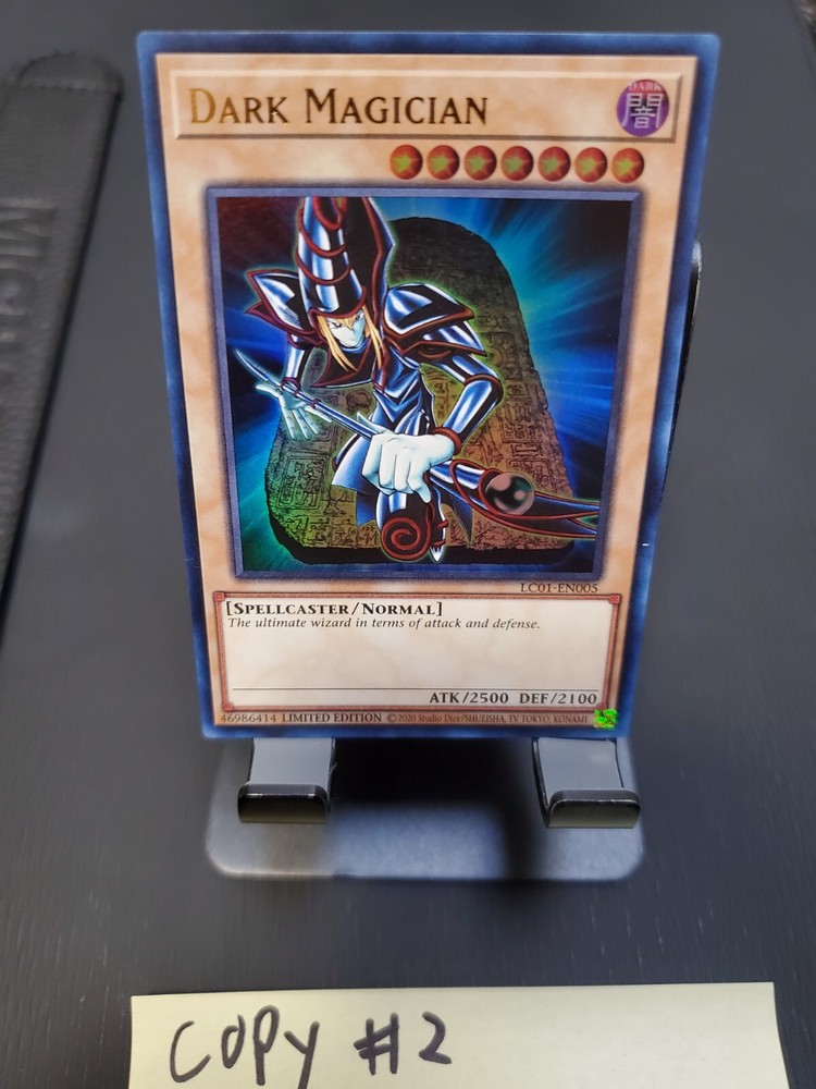 Dark Magician LC01-EN005 is from the Legendary Collection . The card is in Near Mint condition! Shipping: I will be mailing this card through a #6 envelope. The card will be sleeved, placed in a Toploader, blue tape sealing the top of the Toploader, inserted in a cellophane bag, and wrapped around with paper. If you have any questions regarding the card or shipping, please feel free to message me anytime!