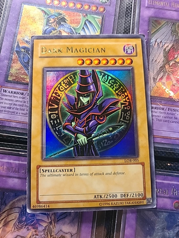 Enhance your Yu-Gi-Oh! TCG collection with the legendary Dark Magician card from The Legend of Blue Eyes White Dragon set. Featuring the iconic artwork that veteran players and newcomers alike have come to admire, this Ultra Rare card is a must-have for duelists seeking to bolster their deck with a powerful Spellcaster-type monster. With an attack power of 2500 and a defense strength of 2100, the Dark Magician card, numbered LOB-005, stands as a formidable contender in any battle. Produced by Konami and presented in English, this card embodies the Unlimited feature, allowing for a versatile playstyle. Add this timeless piece to your collection and unleash its mystical power upon your opponents.