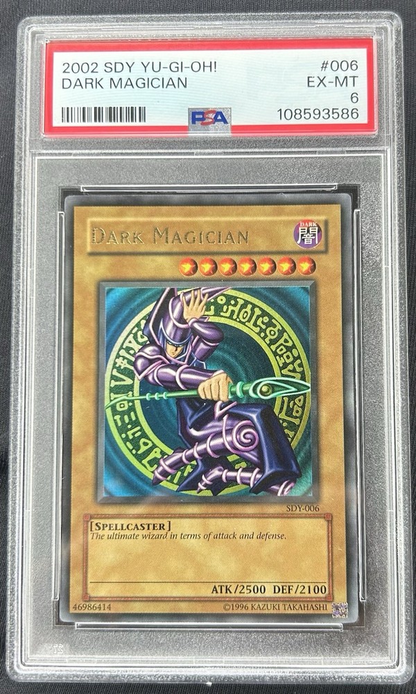 The Yu-Gi-Oh! Dark Magician Starter Deck Yugi 1st Edition Ultra Rare SDY-006 PSA 6 is a highly sought-after collectible card for fans of the Yu-Gi-Oh! game. Featuring the iconic Dark Magician card from the Yugi set, this English-language card holds value for its rarity and 1st Edition status. Graded by PSA as a 6, this card is a prized possession for collectors and players alike, showcasing the craftsmanship of Konami in producing high-quality trading cards.