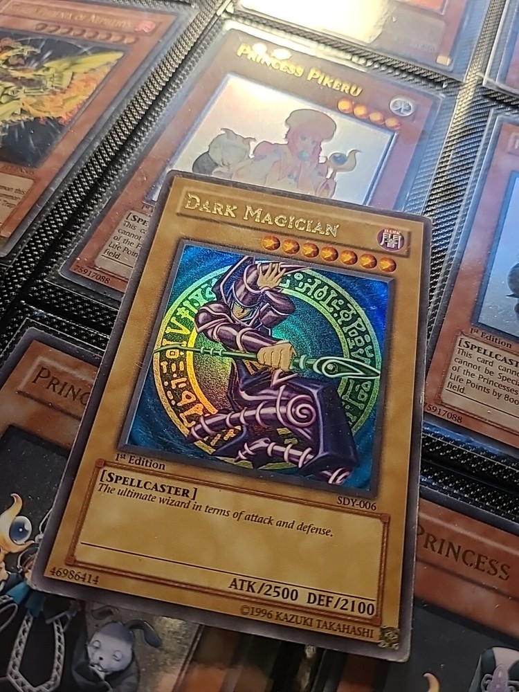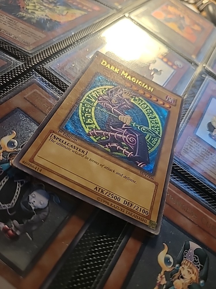 This Yu-Gi-Oh! Dark Magician Starter Deck is a highly sought-after item for collectors and players alike. With its ultra-rare status and 1st edition features, this card is a must-have for any serious Yu-Gi-Oh! Trading Card Game enthusiast. The card's attributes include darkness, and it is a normal card type. The card number is SDY-006, and it is part of the Yugi set. The language is English, and it was manufactured in 2002. Don't miss out on the chance to add this rare and valuable card to your collection.