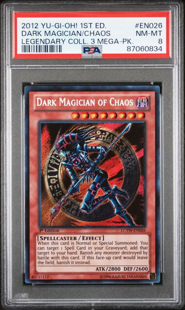 Description You are purchasing the item(s) listed in the table below. Shipping Unless stated otherwise, free shipping. All cards are shipped in a bubble mailer. All items are shipped within 24 hours. Weekends do not count as business days. All orders made on Fridays after 8AM EST and weekends will be shipped on the following Monday. International Shipping Only ship to eligible countries under the GSP (Global Shipping Program). Buyers are responsible for all international shipping fees. For more information, go to this link [http://pages.ebay.com/help/buy/shipping-globally.html] No Returns Quantity Name 1 Dark Magician of Chaos - LCYW-EN026 - Secret Rare - 1st Edition - PSA 8
